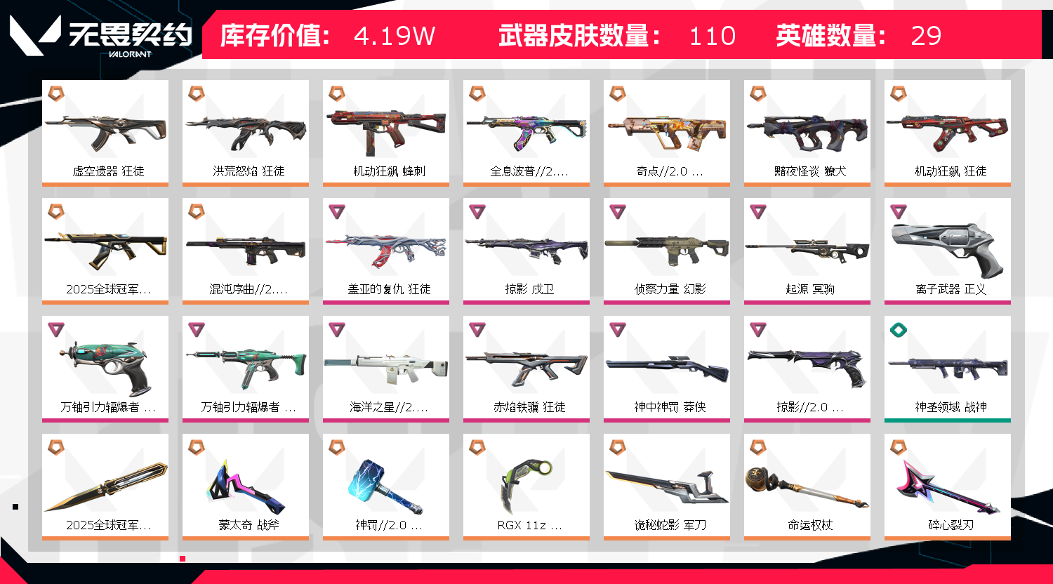 • 皮肤资产价值: 41900