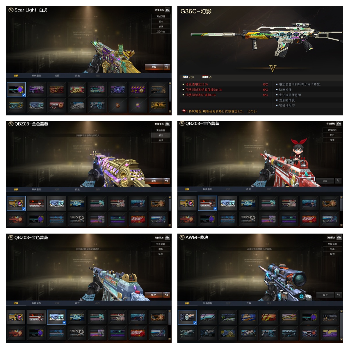 传说影煞⚡5皮音效幻神⚡巅峰荣耀白虎G36C羽挚裁决⚡3皮QBZ⚡傲竹金蛇98K星神全手枪炽芒蝶刃