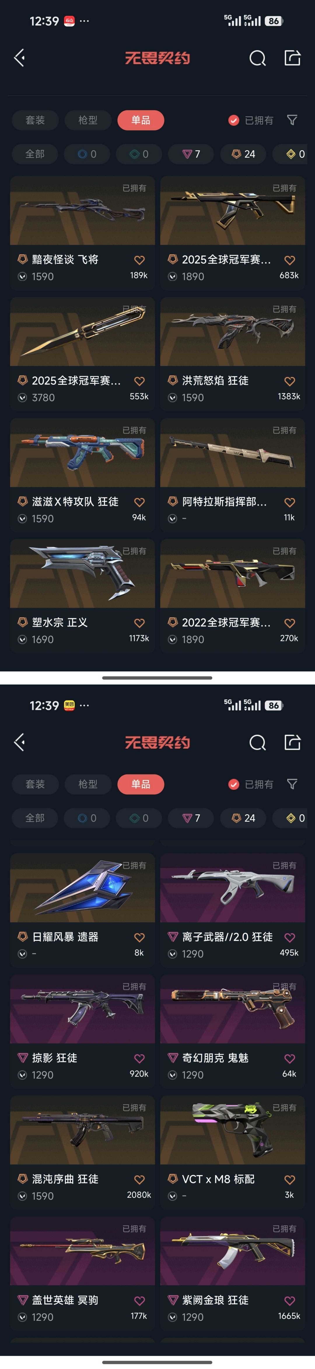 可排位8万库存!21冠军全套!25冠军归零套!VCT洪荒混沌特攻队离子掠影紫阙盖亚狂徒22冠军侦查幻