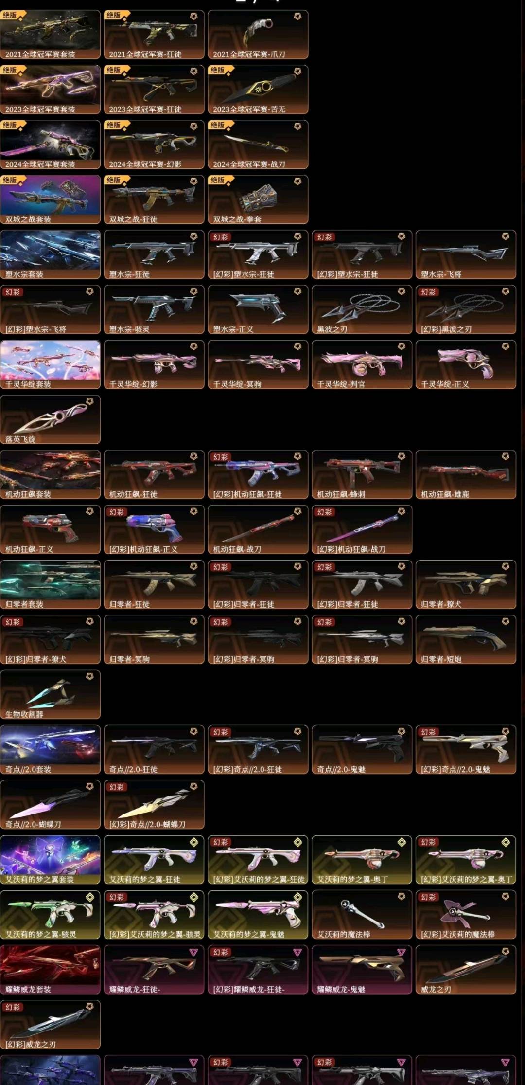 可排位 英雄28 武器皮肤数量224;艾沃莉的梦之翼 奥丁,黑波之刃,离火刃,剥皮小刀,镭切,威龙之刃,VCT 2025 爪刀,