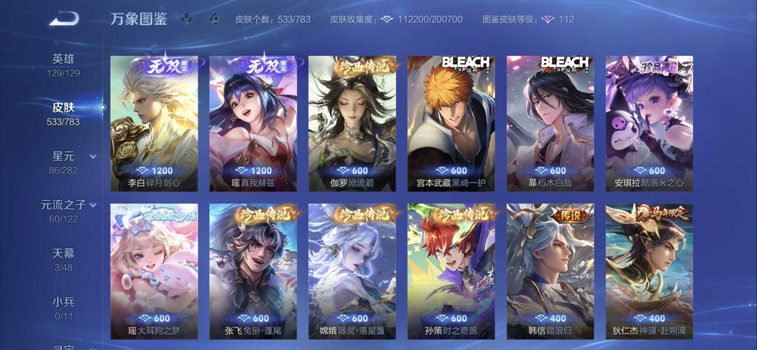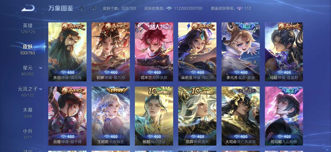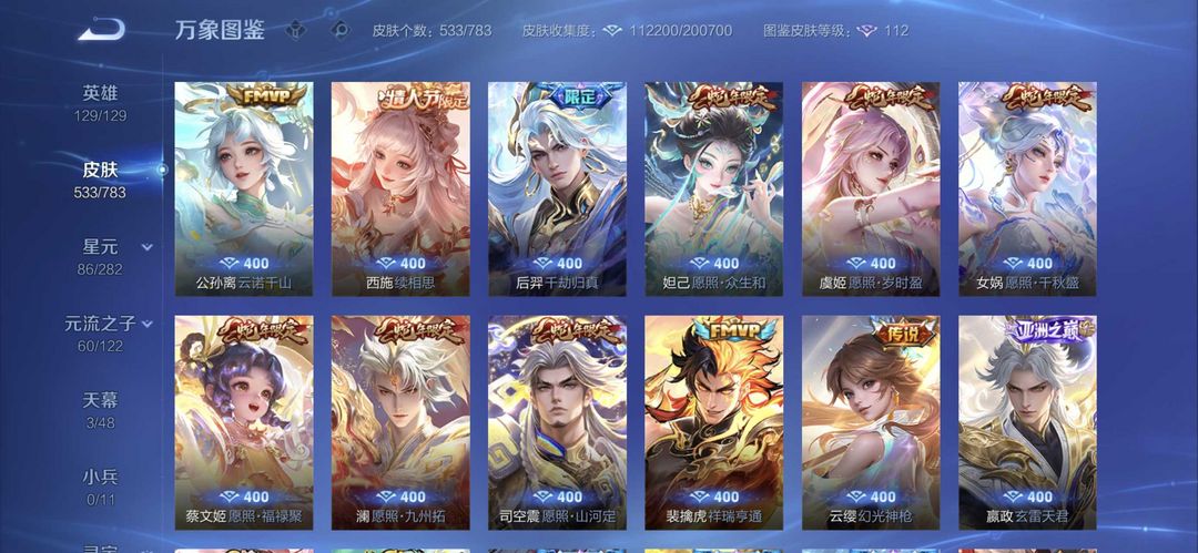【非云直上】537满皮满典藏12星元◎鲁班新皮◎虞姬星元◎天使星元◎白金战神◎妲己绝版星元