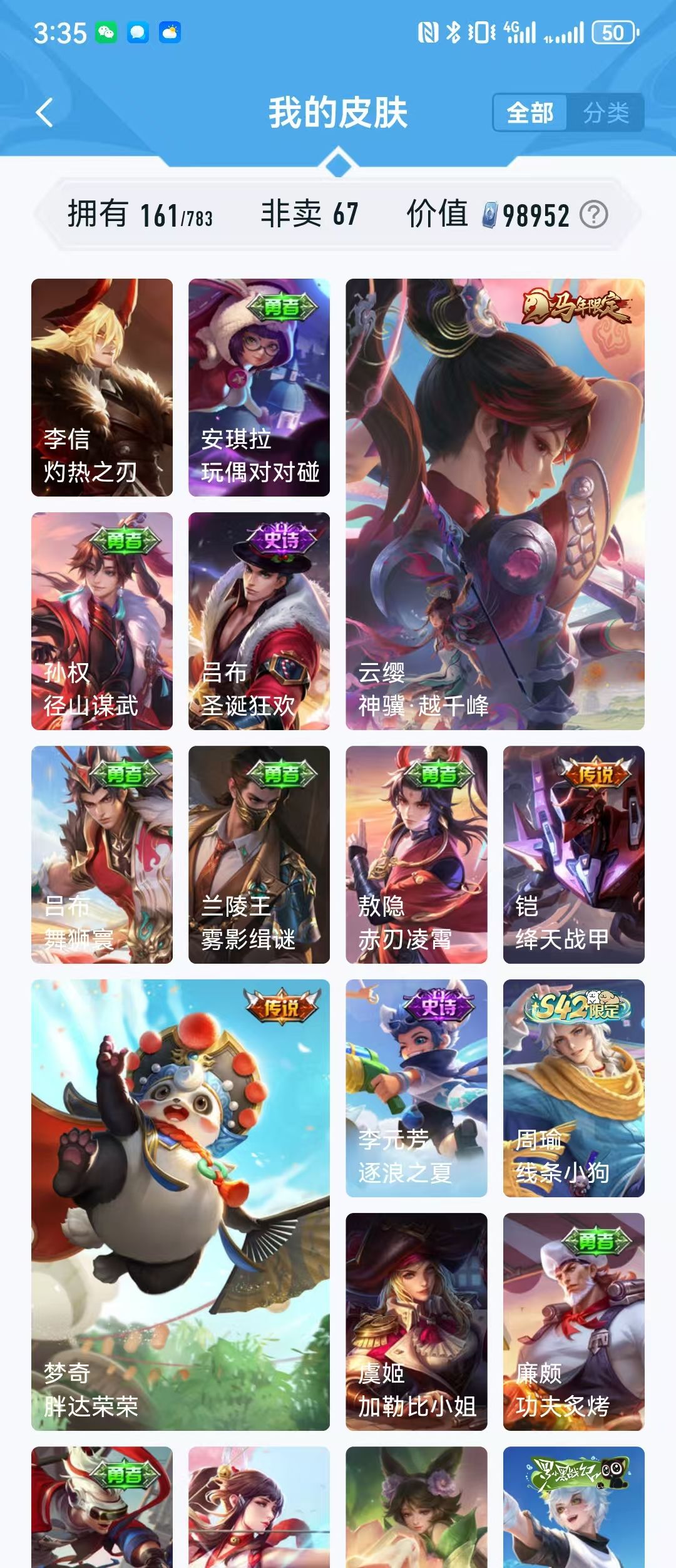 V10、550皮14水、吕布典藏-千魇归渊、云缨-神骥·越千峰、怪盗基德、伽罗星传说红枫、瑶典藏拾光映像、冥王哈迪斯、、龙年限定、齐天大圣