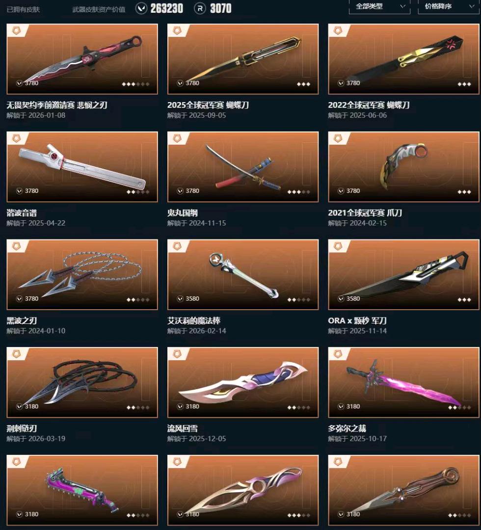 • 皮肤资产价值: 263230