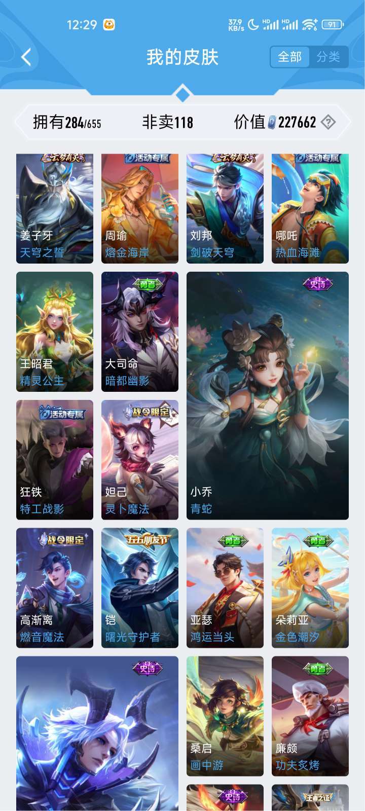 女生号 贵10 多皮肤多传说 别拿那些空号v10来比 要看性价比 貂蝉武则天夏侯惇孙悟空李白鲁班小乔荣耀水晶 妲己九尾无双皮肤 80个传说 473皮肤