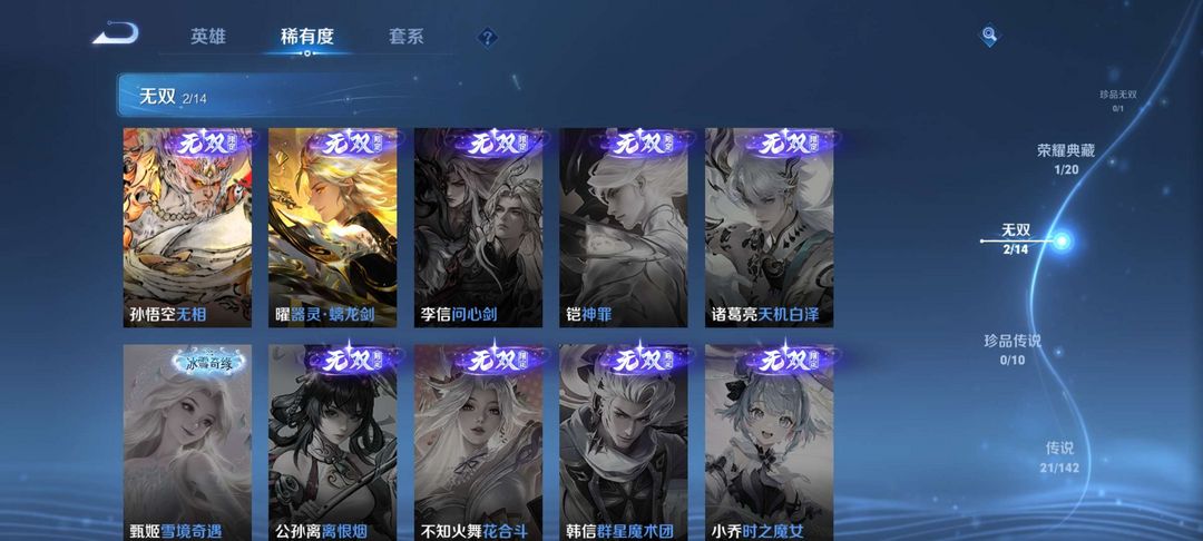 V10、550皮14水、吕布典藏-千魇归渊、云缨-神骥·越千峰、怪盗基德、伽罗星传说红枫、瑶典藏拾光映像、冥王哈迪斯、、龙年限定、齐天大圣