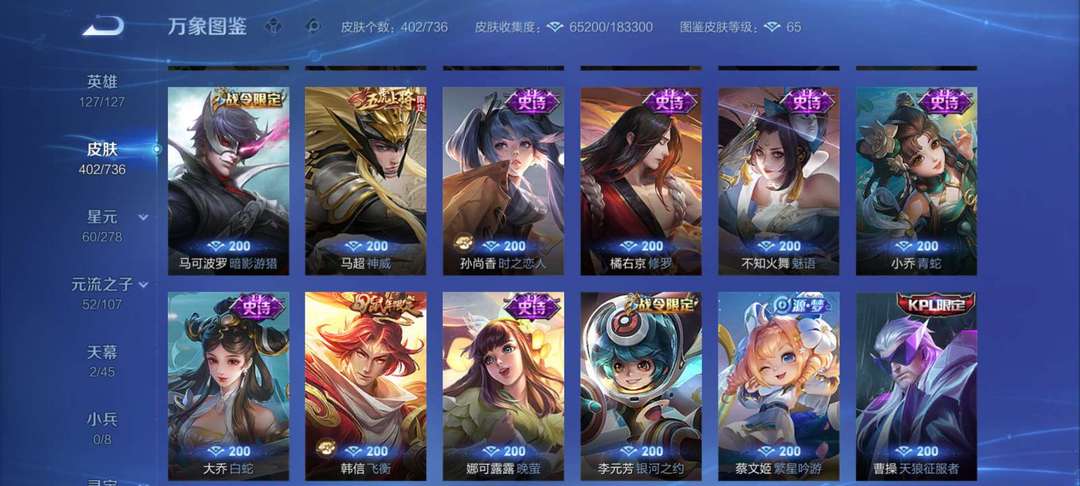 【非云直上】537满皮满典藏12星元◎鲁班新皮◎虞姬星元◎天使星元◎白金战神◎妲己绝版星元