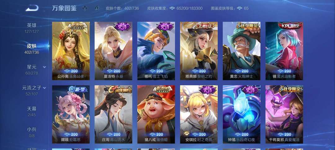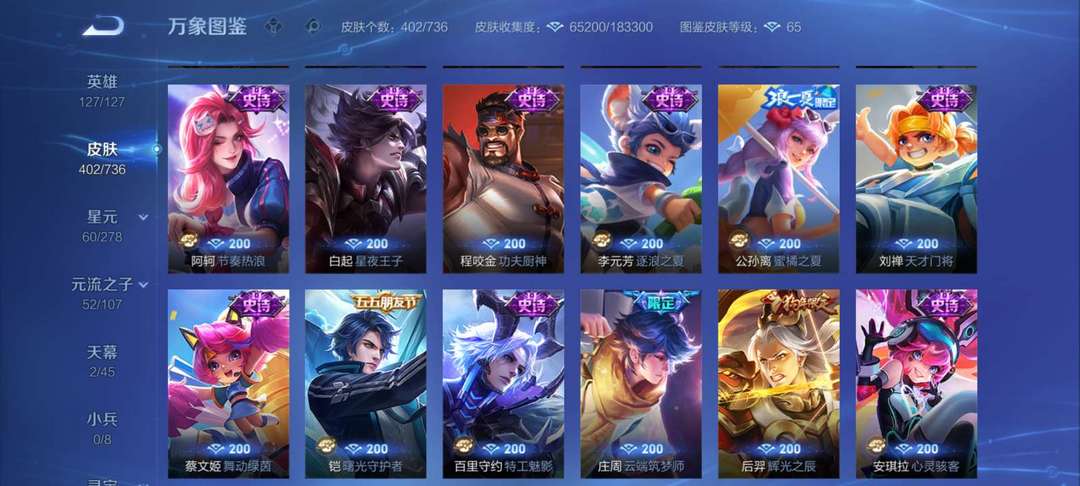 v10、537皮6水4无双、安琪拉-颠倒童话·魔镜、朵莉亚-神骥、遇见神鼓、齐天大圣、白虎志、韩信荣耀典藏、73传说、时之魔女、瑶无双、青丘、九尾、神器明辉仪