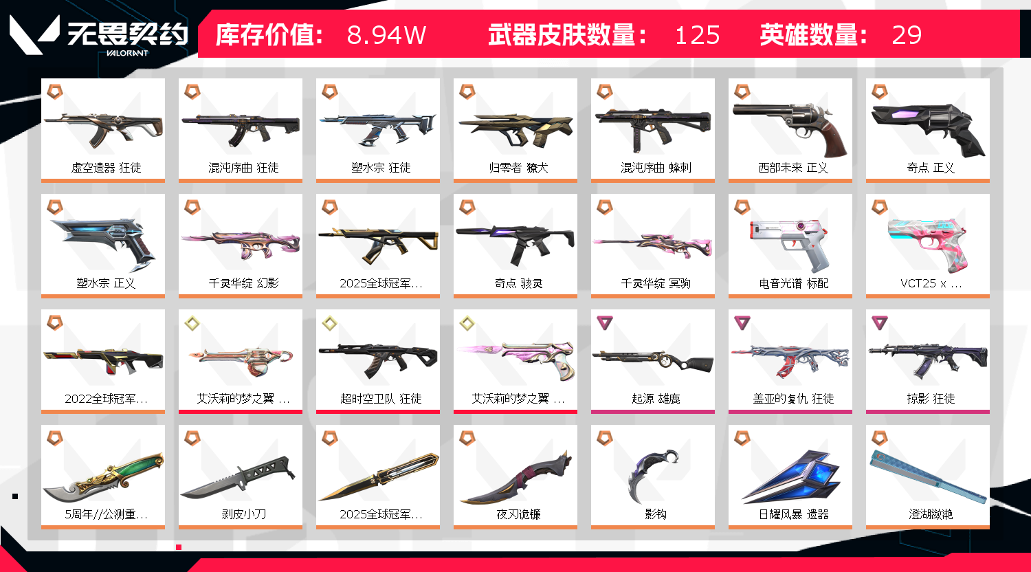 首页 > 租号大厅 > 无畏契约-wegame > wegame/wegame > 9w库存25冠军套掠夺2.0套|超时空塑水宗虚空盖亚ak|侦察蛇年幻影西部正义|显卡爪刀剥皮蝴蝶刀|