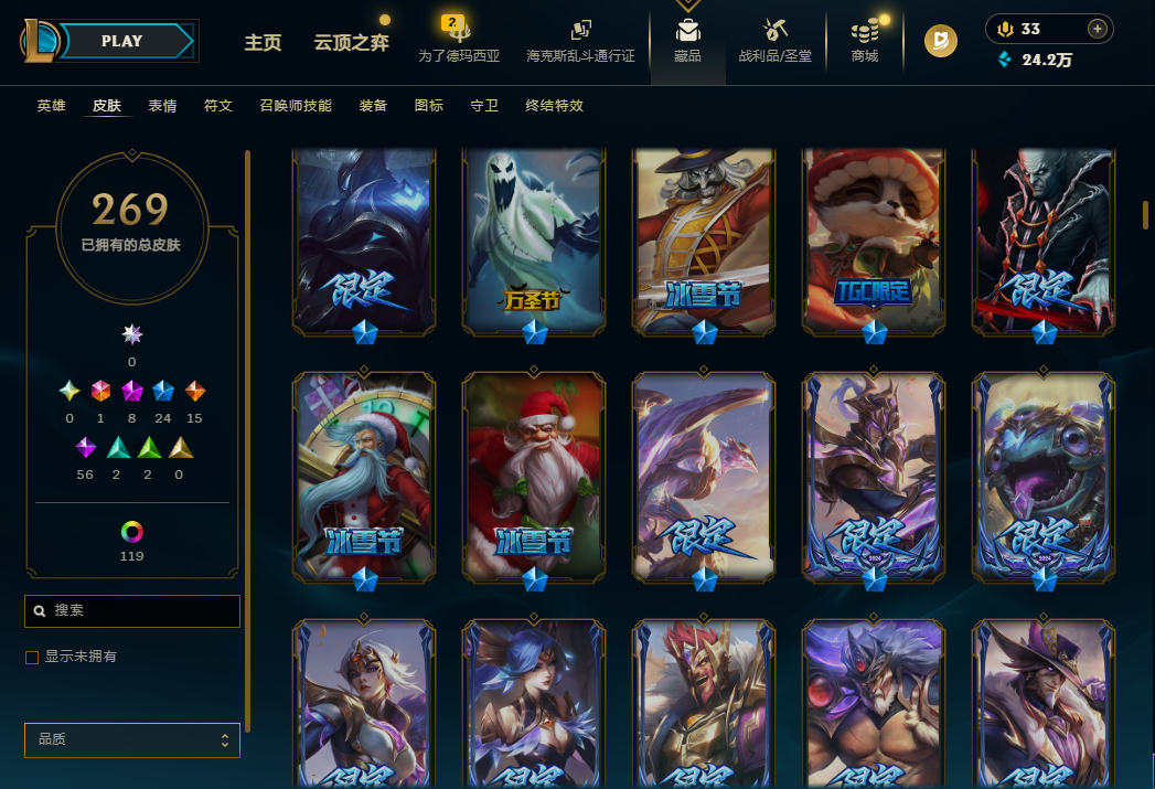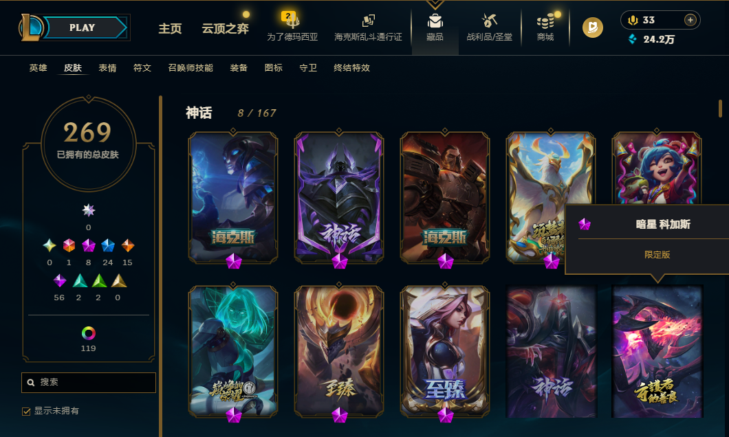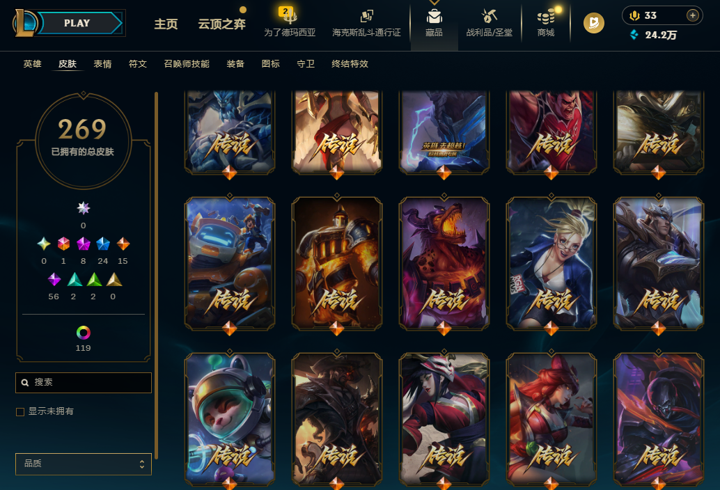1011皮肤+4终极+21神话+25个三星小小英雄+福星新皮免费+摄魂VN至臻伊芙琳阿狸锤石塞娜瑞文