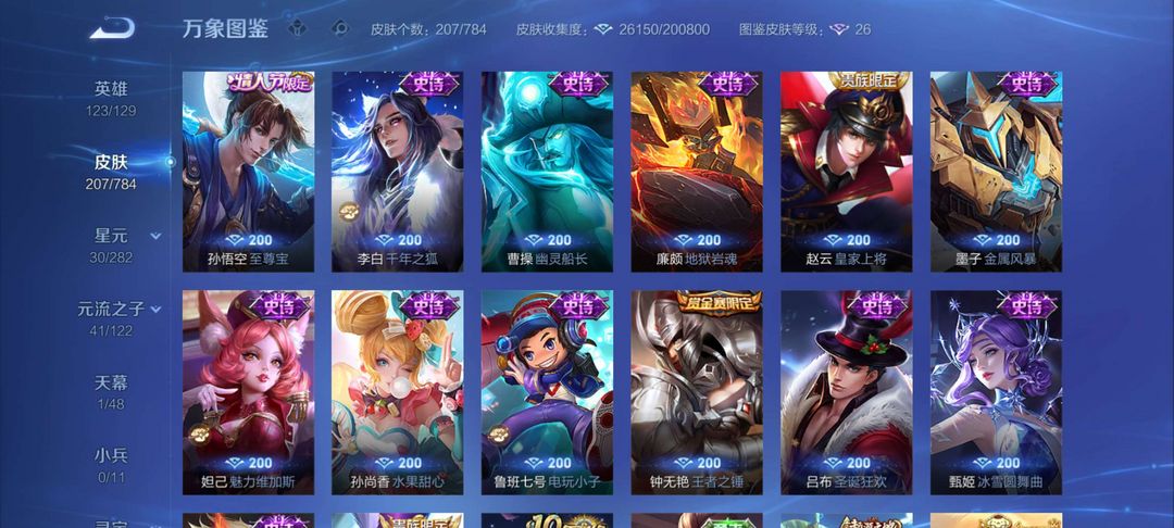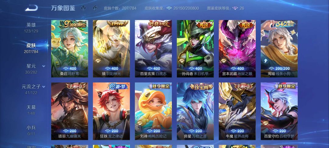 女生号 贵10 多皮肤多传说 别拿那些空号v10来比 要看性价比 貂蝉武则天夏侯惇孙悟空李白鲁班小乔荣耀水晶 妲己九尾无双皮肤 80个传说 473皮肤