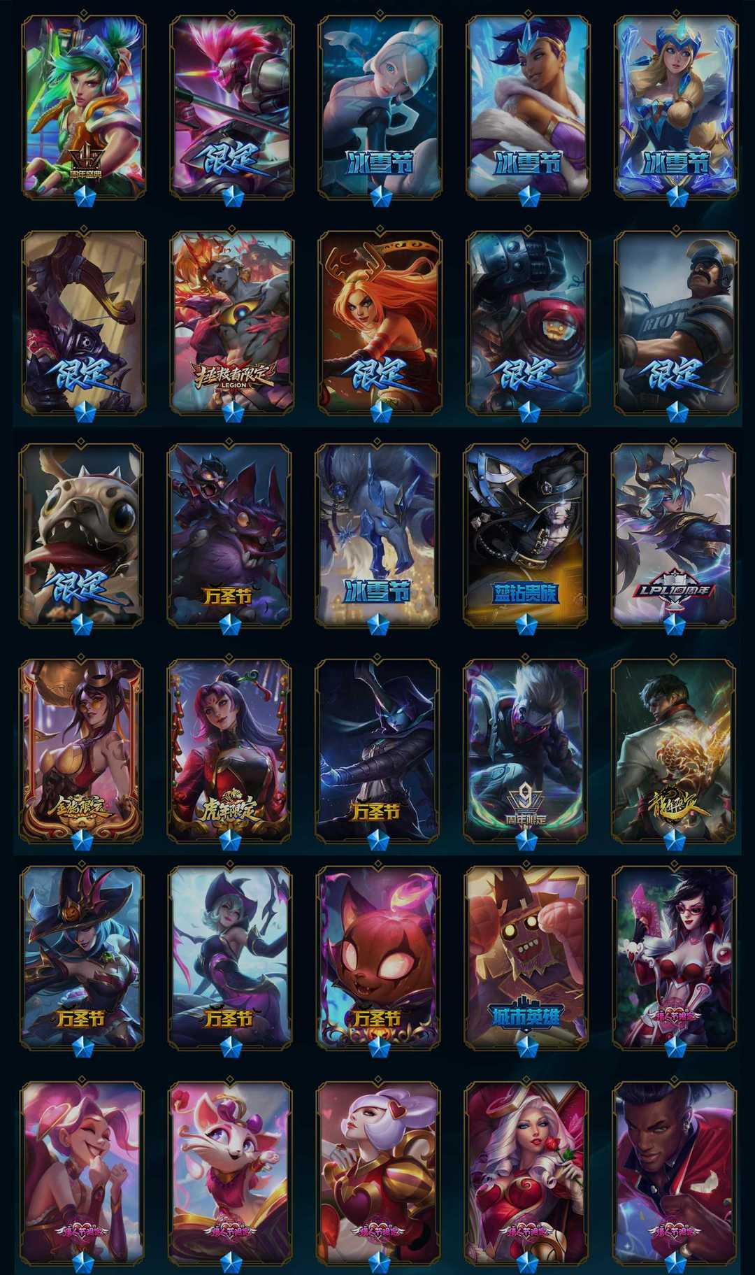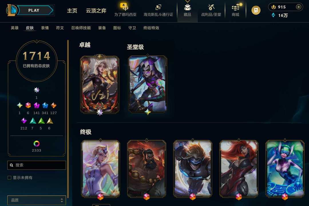 艾欧尼亚/黄金/全英雄/1122皮肤/终极2/神话27/限定121/臻彩17/炫彩321/