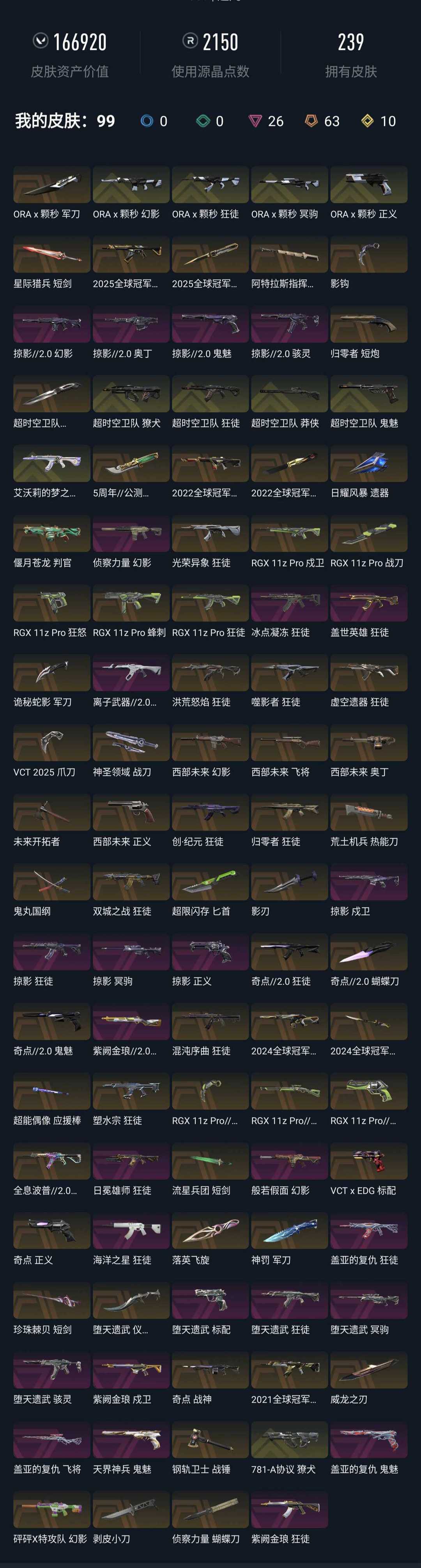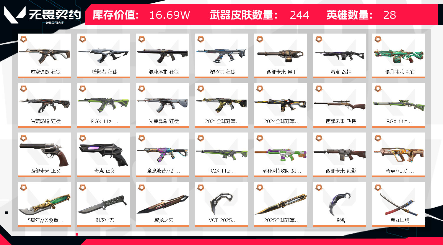 • 皮肤资产价值: 166920