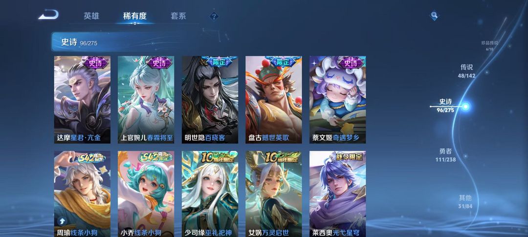 V10、550皮14水、吕布典藏-千魇归渊、云缨-神骥·越千峰、怪盗基德、伽罗星传说红枫、瑶典藏拾光映像、冥王哈迪斯、、龙年限定、齐天大圣