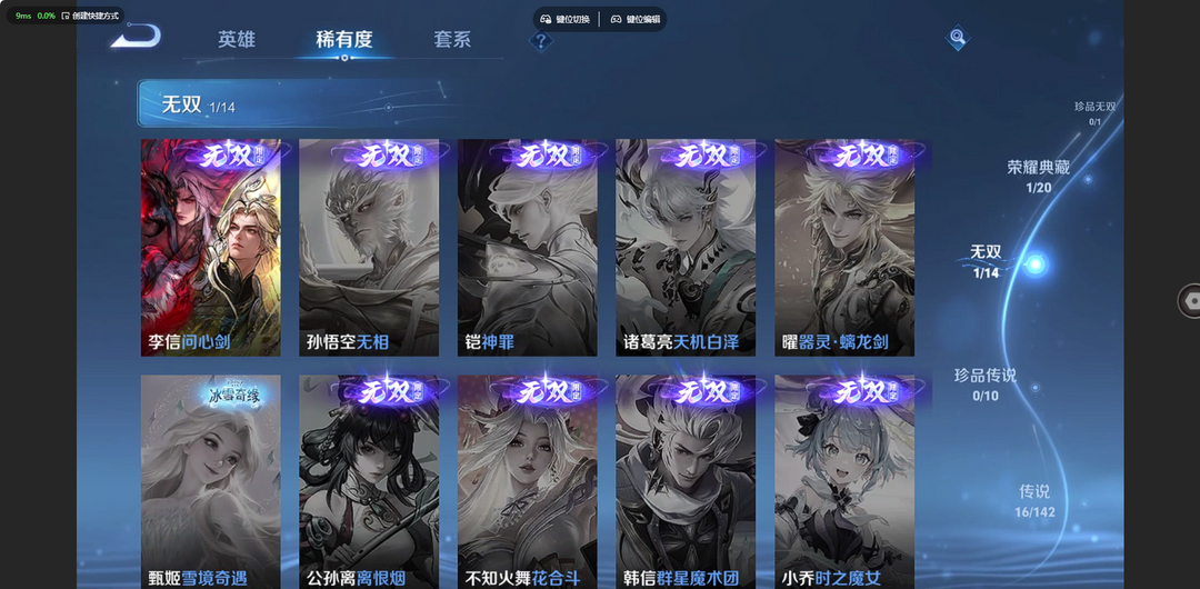 【非云直上】V10★皮肤榜一★539皮满典藏★鲁班时之奇旅会员★虞姬黛羽霜翎星元★吕布白金战神★全能大师★多金标★个性按键