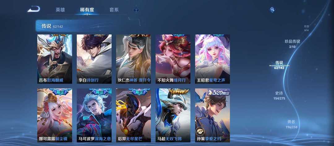 【非沄直接上号】极品V10★三历史国标★430皮★六典藏★诸葛亮新典藏★虎年五限定★鸣剑戈影★活力突击️★多限定