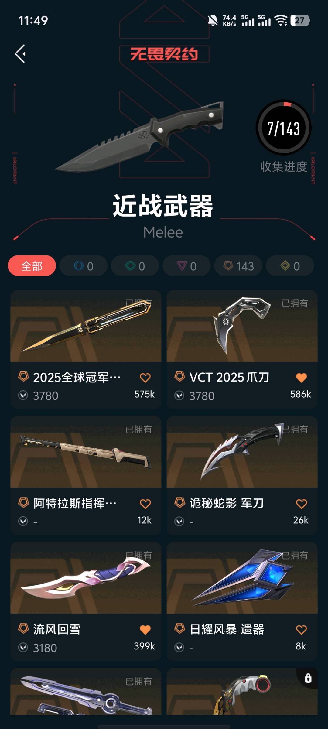 皮肤资产价值36070,25冠军套,刀皮莲花扇子和VCT爪刀