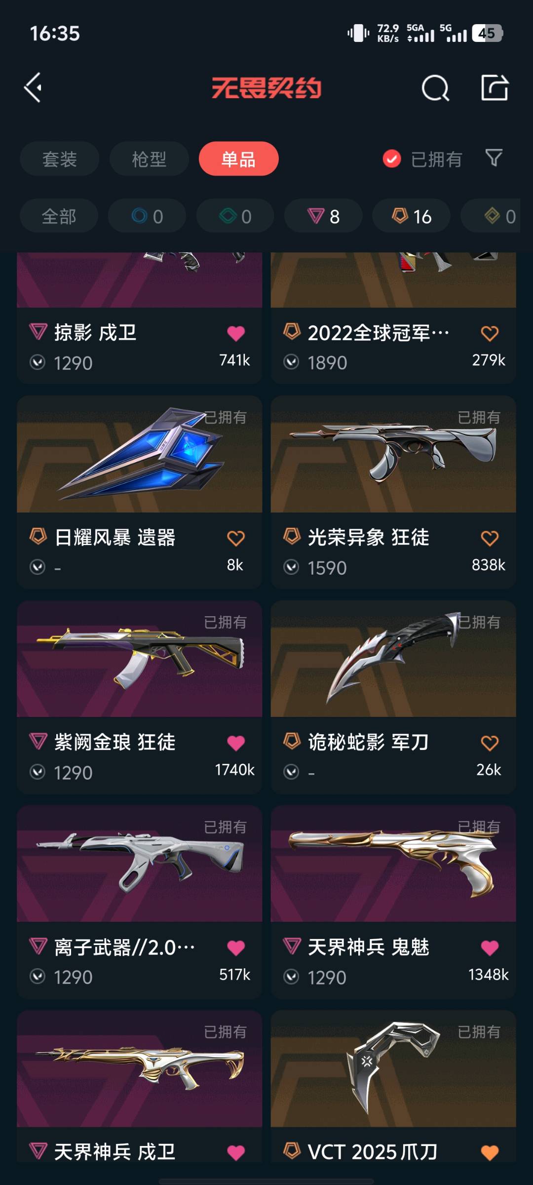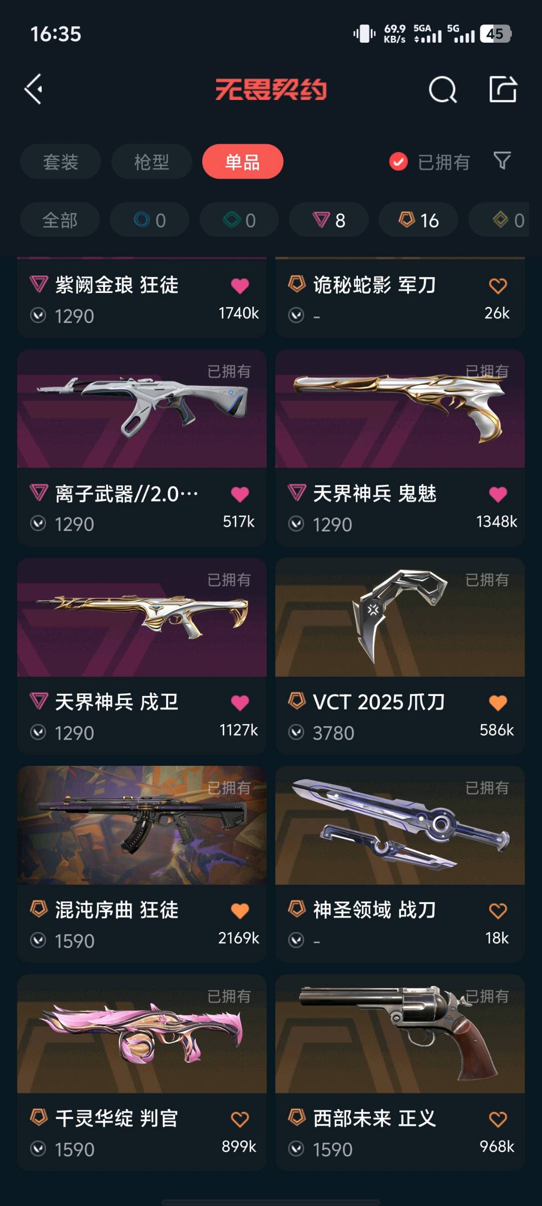首页 > 租号大厅 > 无畏契约-wegame > wegame/wegame > 皮肤资产价值36070,25冠军套,刀皮莲花扇子和VCT爪刀