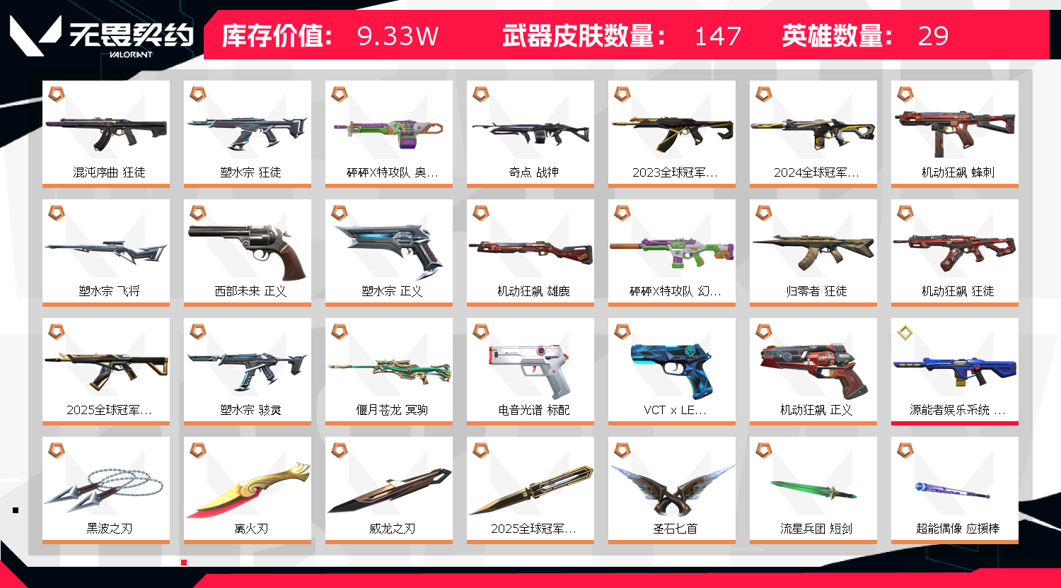 • 皮肤资产价值: 93330
