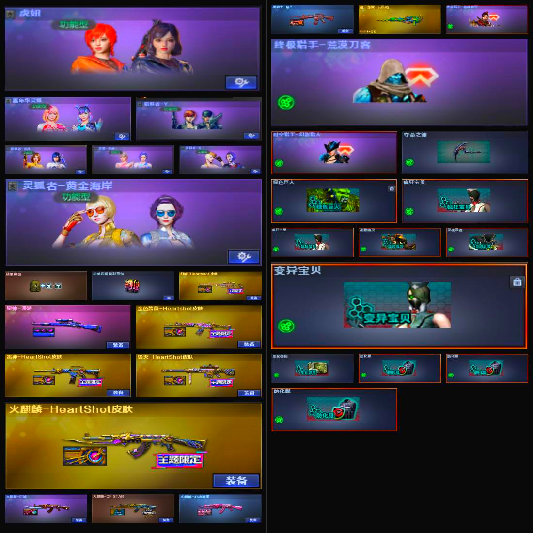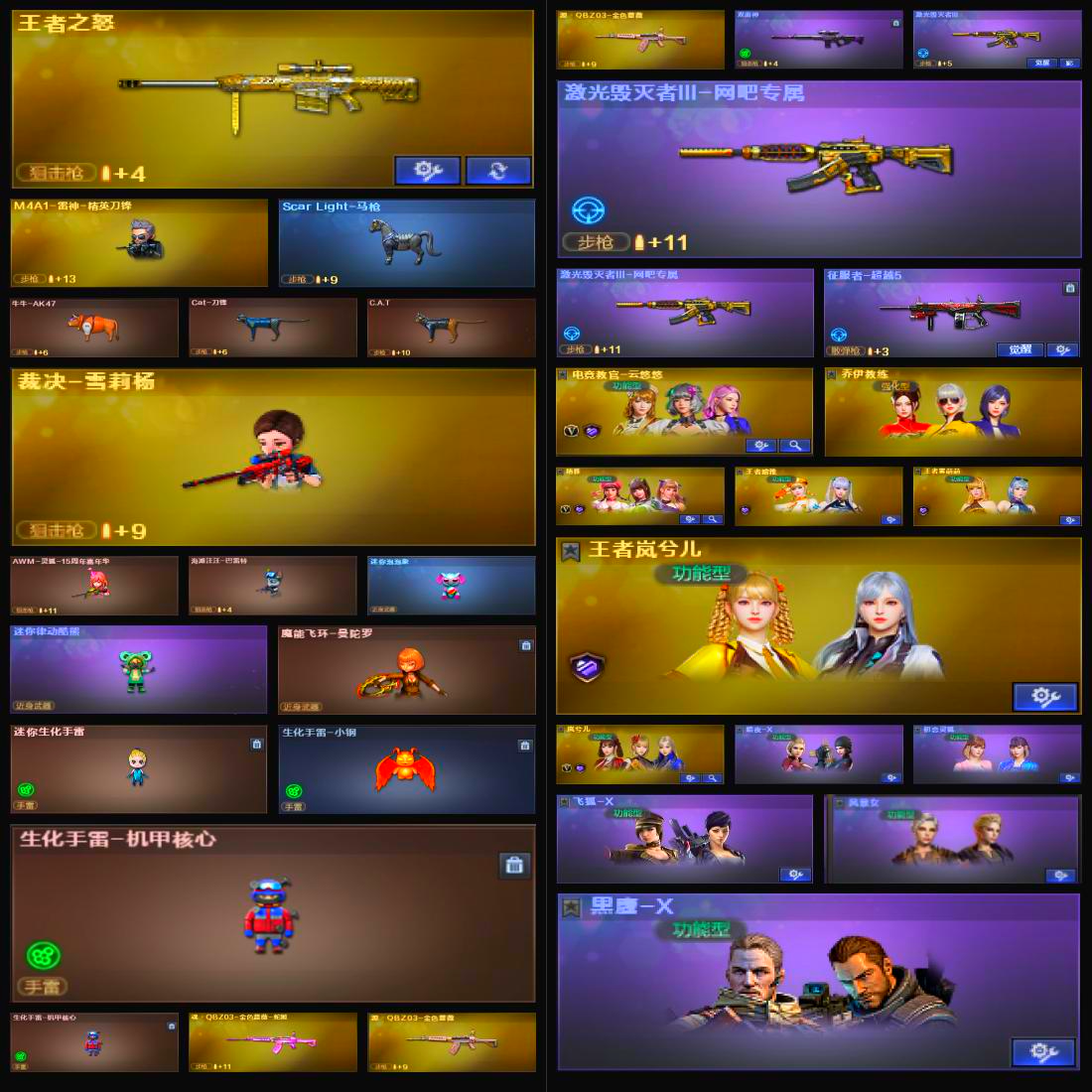 云悠悠,晴雅,幻神 白虎,金蔷薇;电竞教官-云悠悠,晴雅,QBZ03-金色蔷薇,Scar Light-白虎,