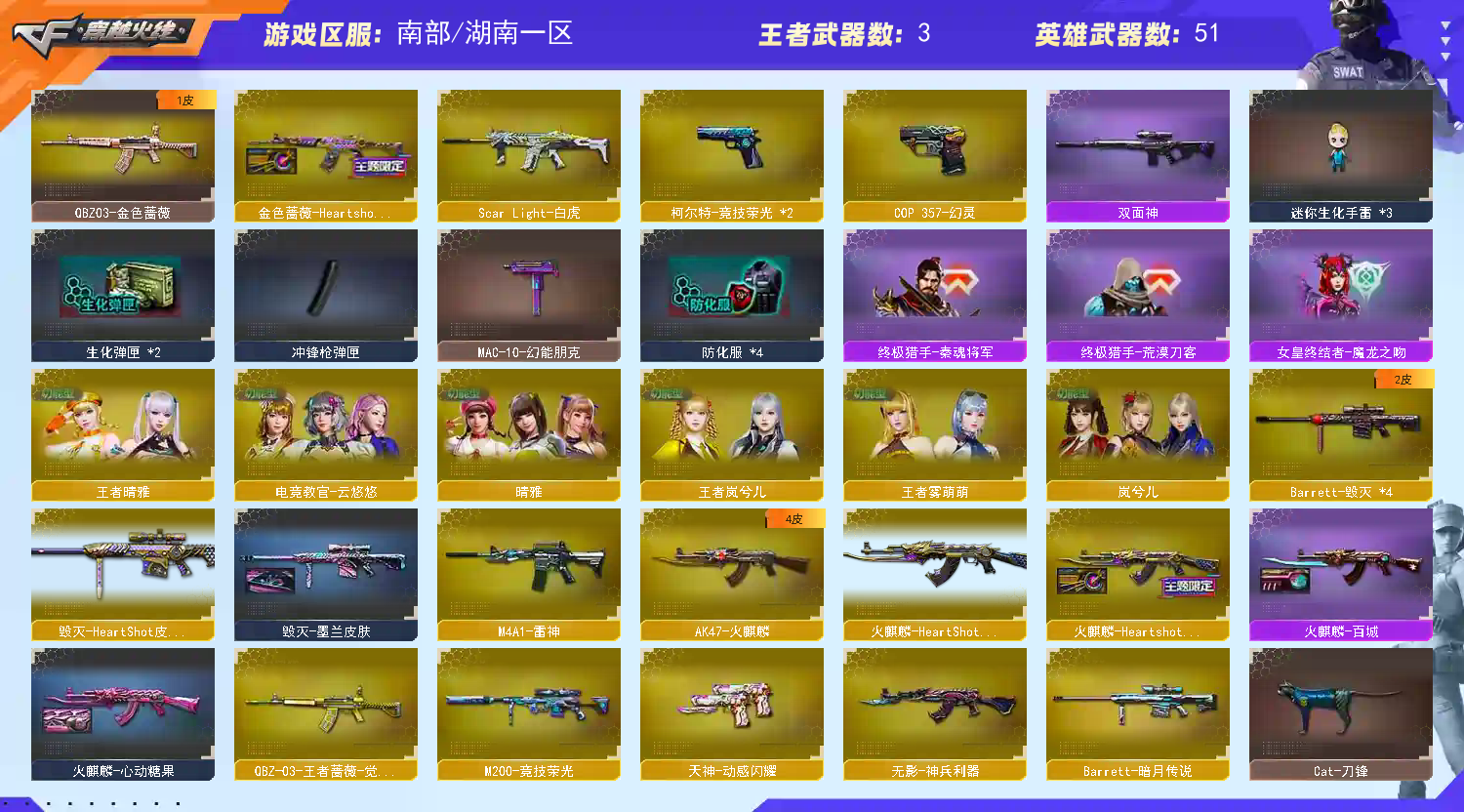 • 游戏区服:穿越火线 / 南部 / 湖南一区