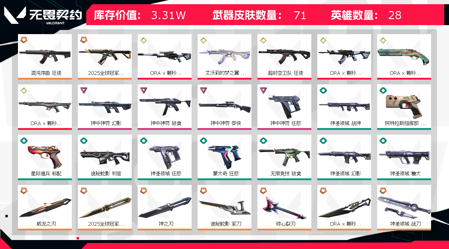 • 游戏区服:无畏契约-wegame / wegame / wegame