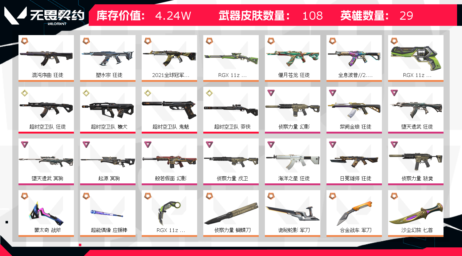 • 武器皮肤数量: 108