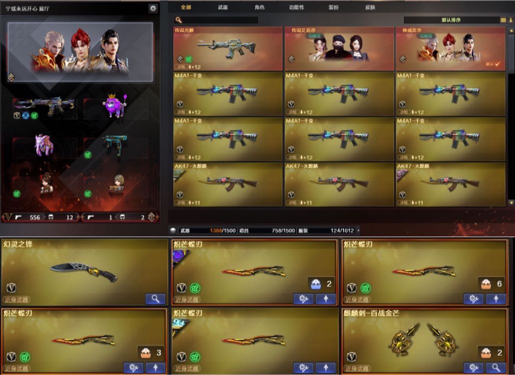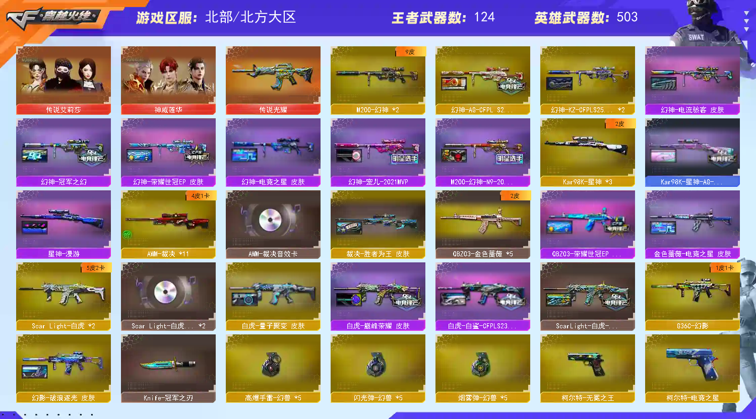 神威莲华艾丽莎虹儿🔥绝版5套幻兽幻神9皮双卡满配副武器🔥6盘烈4蝴蝶刀国王狮子泡泡象全满配;柯尔特-无冕之王,USP-雷暴王者,荣耀世冠-柯尔特,柯尔特-冠军之特,炽芒蝶刃,Knife-冠军之刃,隼,