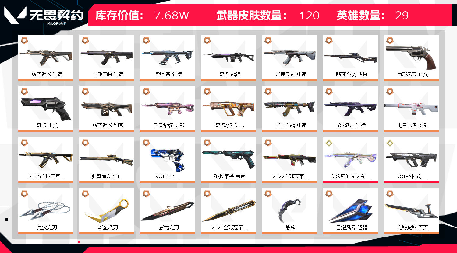首页 > 租号大厅 > 无畏契约-wegame > wegame/wegame > 冻结点解冻✨三棱军刺✨22 25冠军套🏆掠夺2.0套✨黑波龙刀 显卡蝴蝶刀✨猫猫塑水 光荣异象狂徒