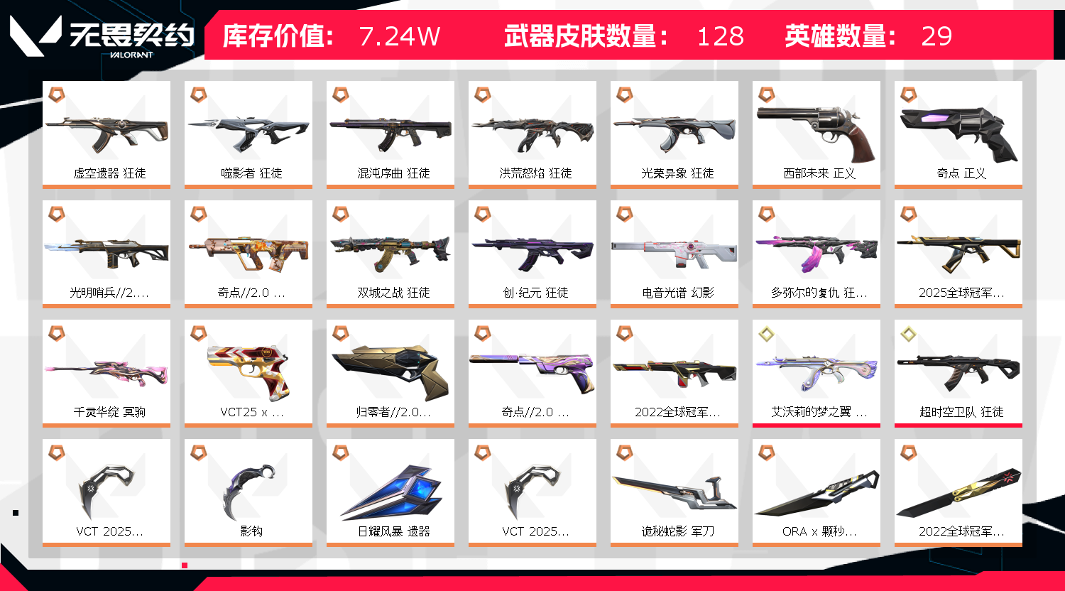 ❤️❤️❤️账号库存价值较大,已做大额虚拟资产备案,开挂盗号等行为报案处理,请不要以身试法。 ❤️❤️❤️禁止游戏内挂机违者拉黑公示,喜欢本账号请点收藏★方便下次租用,谢谢光临惠顾❤️❤️❤️账号库存价值较大,已做大额虚拟资产备案,开挂盗号等行为报案处理,请不要以身试法。 ❤️❤️❤️禁止游戏内挂机违者拉黑公示,喜欢本账号请点收藏★方便下次租用,谢谢光临惠顾❤️❤️❤️账号库存价值较大,已做大额虚拟资产备案,开挂盗号等行为报案处理,请不要以身试法。 ❤️❤️❤️禁止游戏内挂机违者拉黑公示,喜欢本账号请点收藏★方便下次租用,谢谢光临惠顾;VCT 2025 爪刀,虚空遗器 狂徒,洪荒怒焰 狂徒,噬影者 狂徒,掠影 狂徒,侦察力量 幻影,混沌序曲 狂徒,