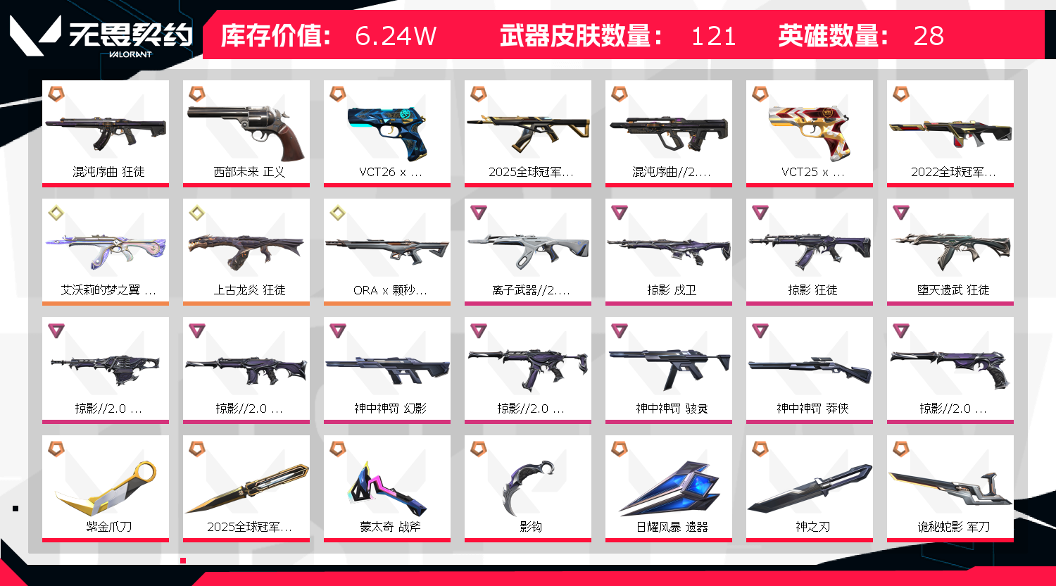 首页 > 租号大厅 > 无畏契约-wegame > wegame/wegame > 可排位 三棱军刺 25冠军套 猫猫ak 22幻影超多刀皮