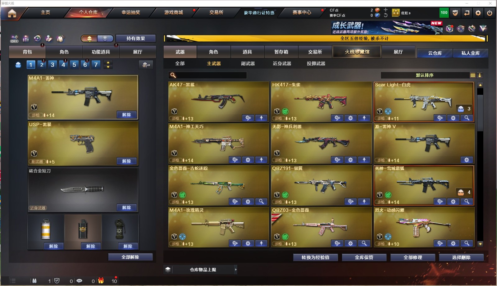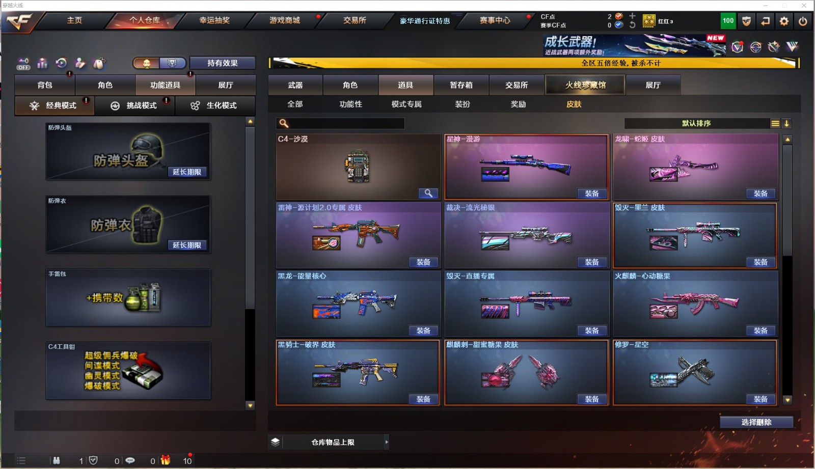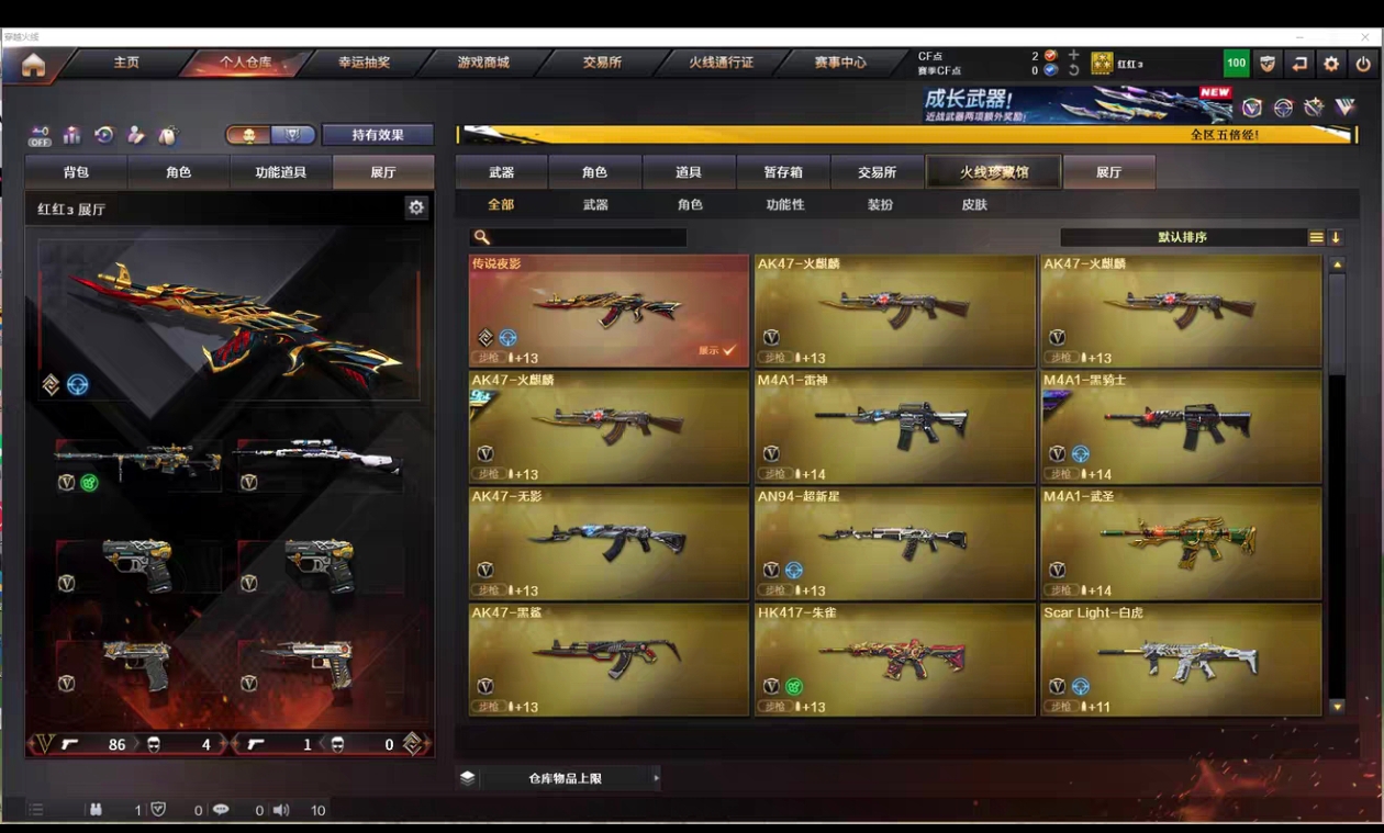 86V/传说夜影/裁决三件套/幻神/星神带皮/白虎/qbz金色蔷薇带皮/5质量副武器/USP雷暴/C