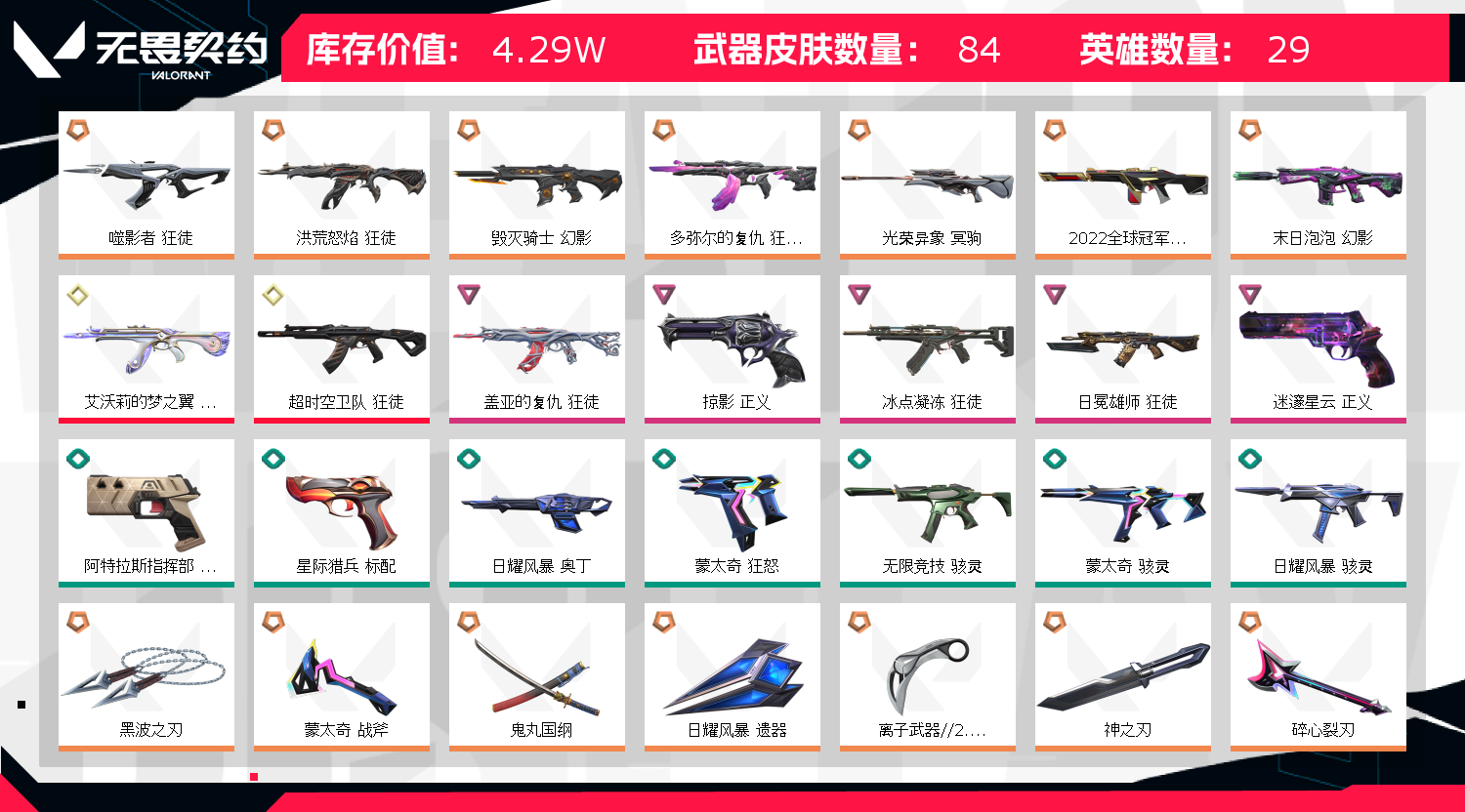 • 武器皮肤数量: 84