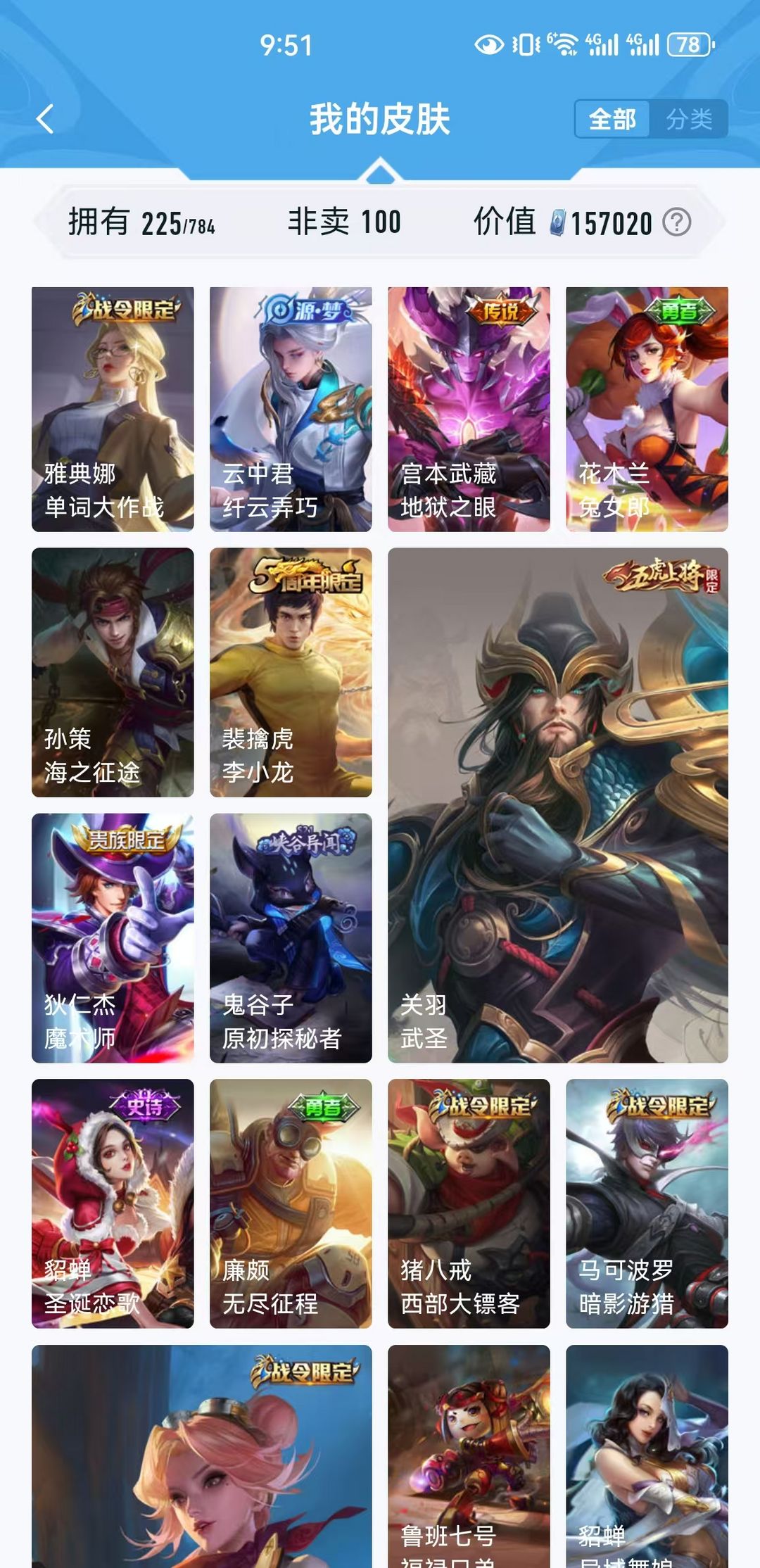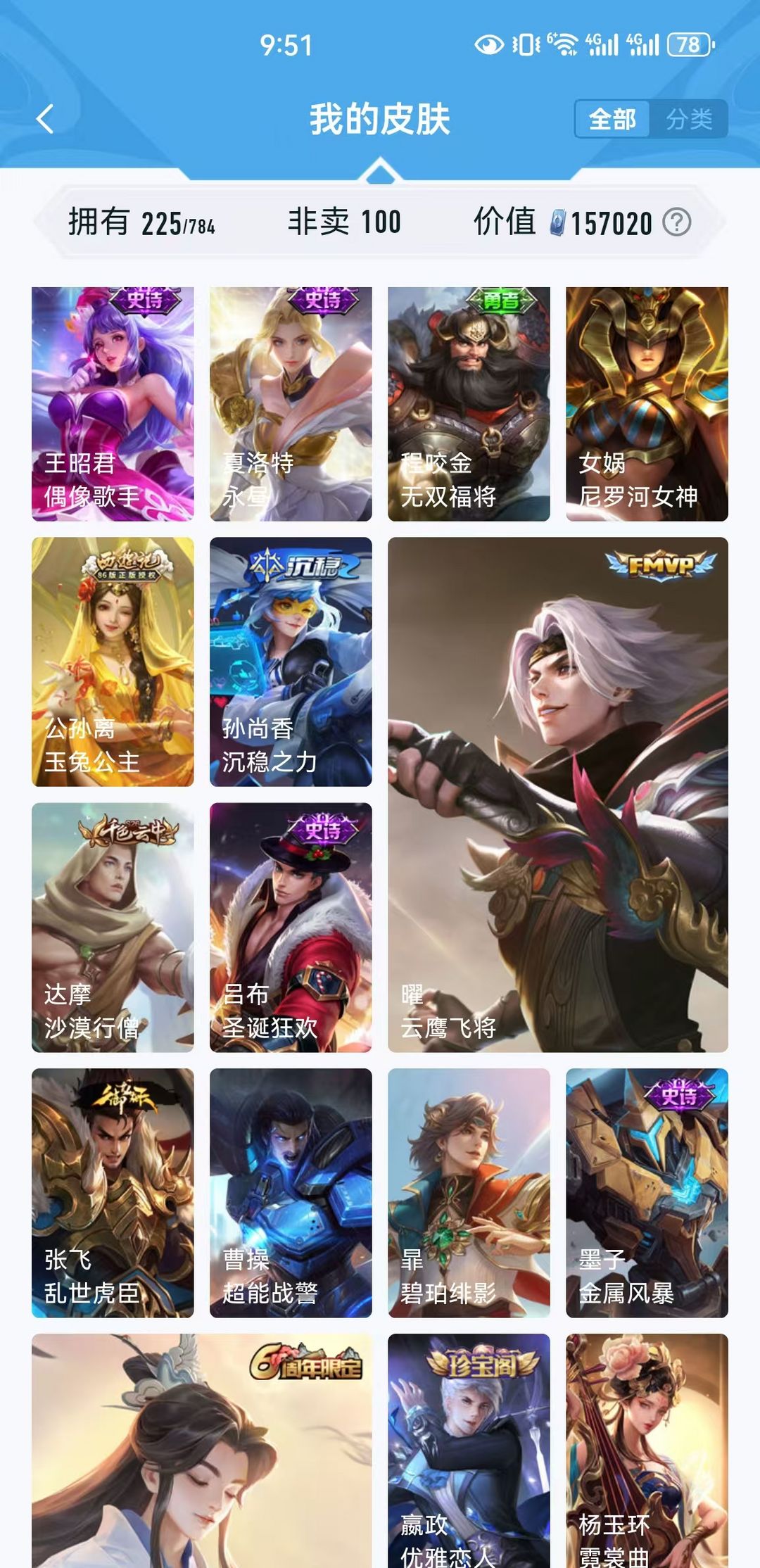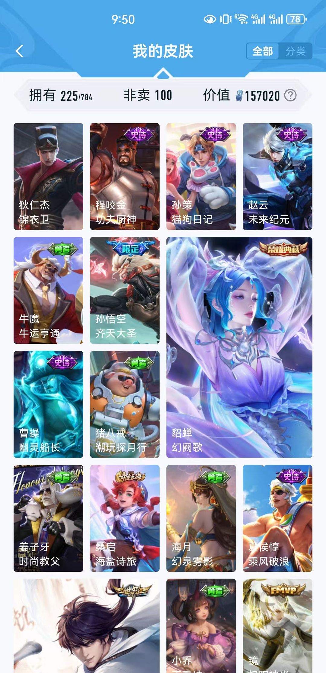 女生号 贵10 多皮肤多传说 别拿那些空号v10来比 要看性价比 貂蝉武则天夏侯惇孙悟空李白鲁班小乔荣耀水晶 妲己九尾无双皮肤 80个传说 473皮肤