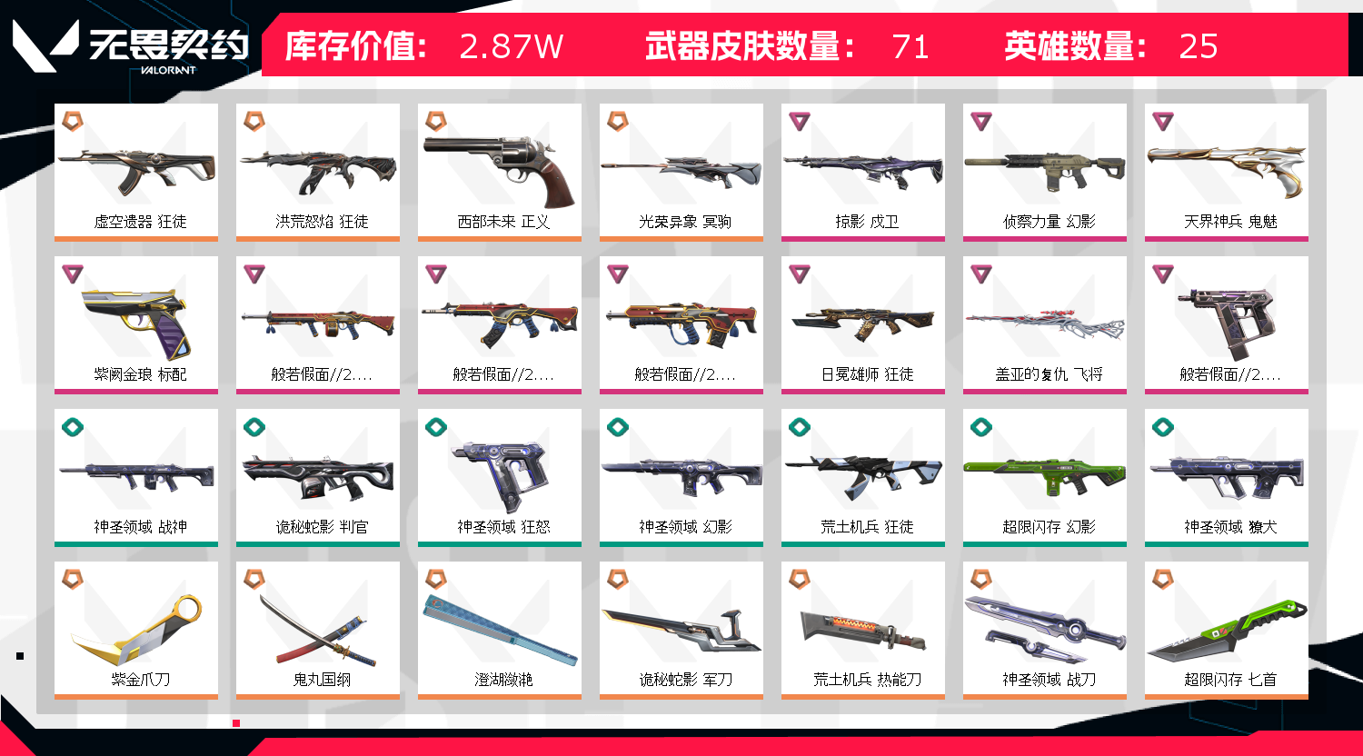 首页 > 租号大厅 > 无畏契约-wegame > wegame/wegame > 钻二 全英雄 ak皮肤多 其他基本毕业皮