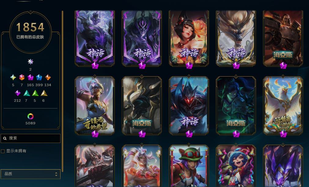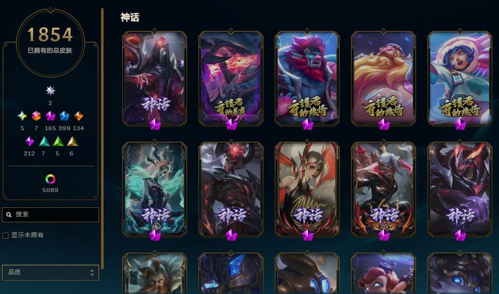 1642p/1110原皮/满英雄/47神话/229限定/龙虾+蓝炫彩/100传说/6终极/阿卡丽寡妇阿狸亚索卡莎琪亚娜至臻/等等具体看图