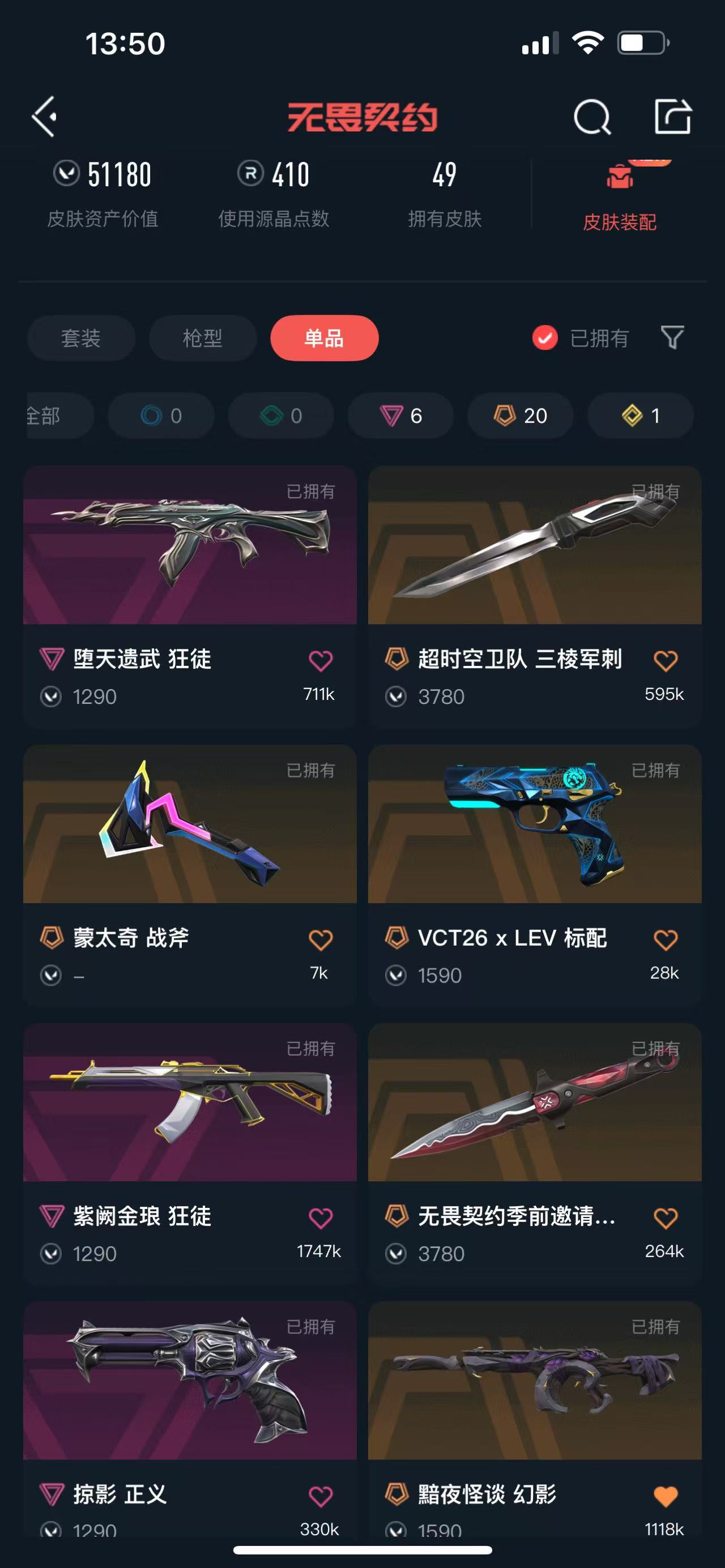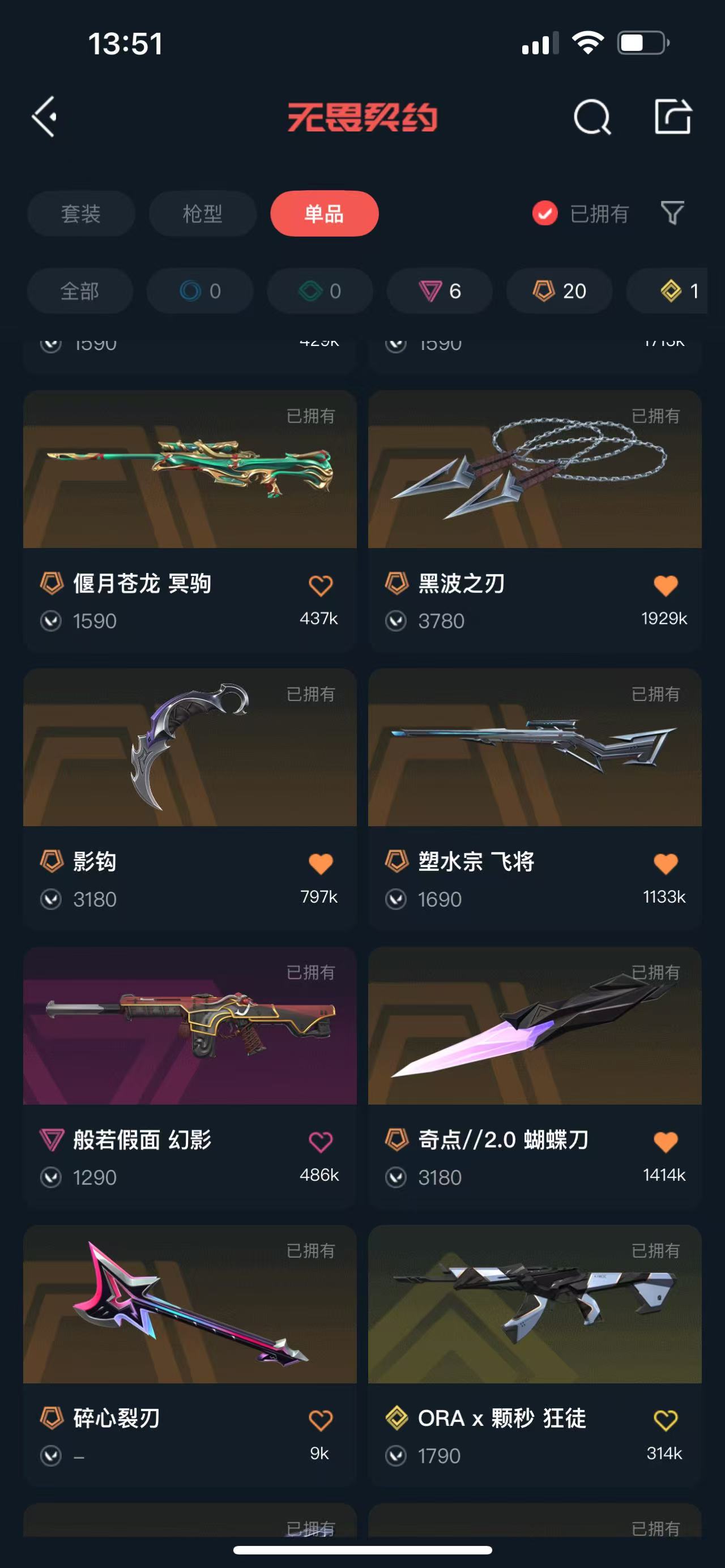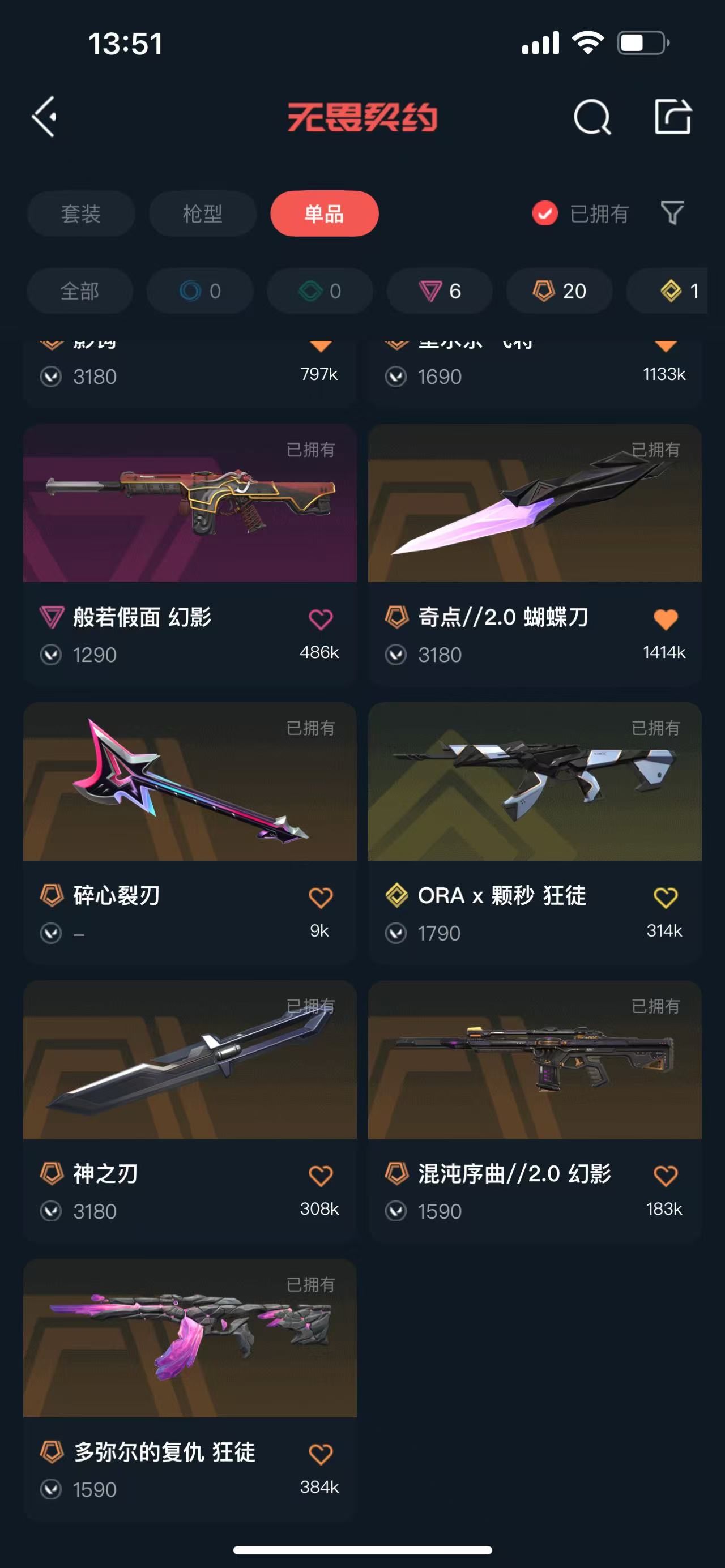莲花套⭐怜悯之刃⭐黑波之刃+三棱+奇点蝴蝶刀+影勾⭐紫金AK+龙狙+奇点正义+天界神兵鬼魅+戍卫