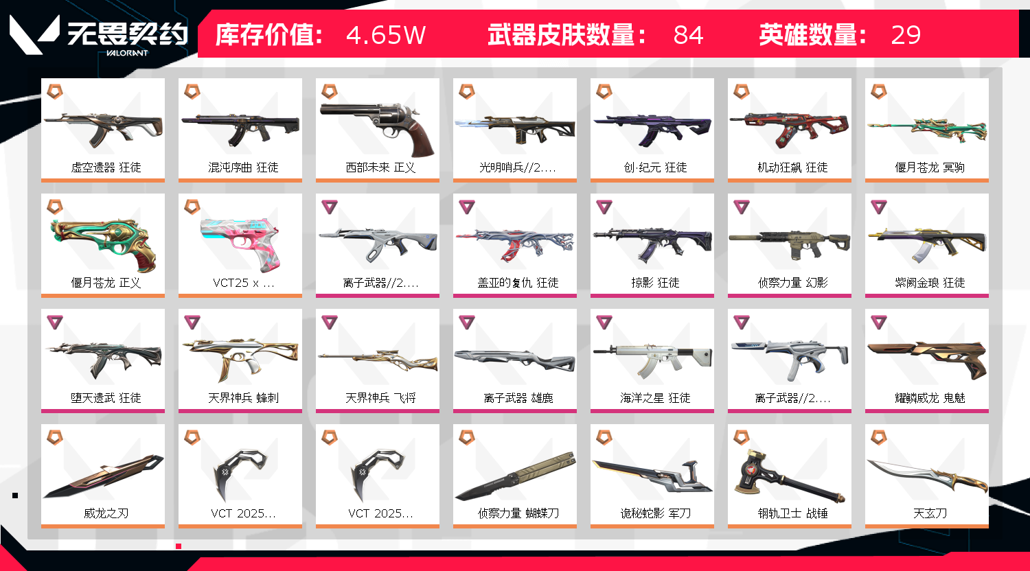 • 武器皮肤数量: 84