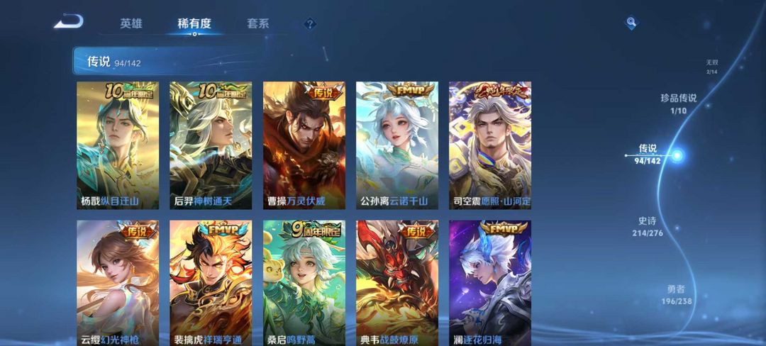 v10、537皮6水4无双、安琪拉-颠倒童话·魔镜、朵莉亚-神骥、遇见神鼓、齐天大圣、白虎志、韩信荣耀典藏、73传说、时之魔女、瑶无双、青丘、九尾、神器明辉仪