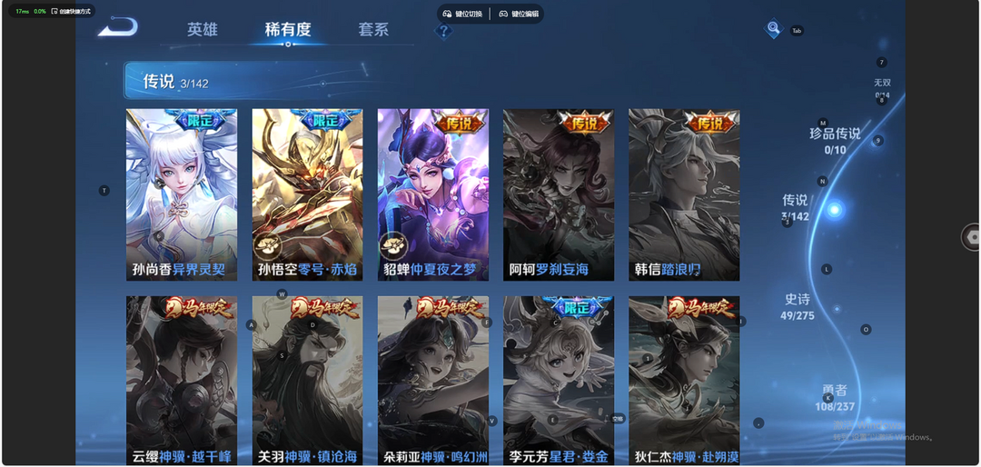 V10、550皮14水、吕布典藏-千魇归渊、云缨-神骥·越千峰、怪盗基德、伽罗星传说红枫、瑶典藏拾光映像、冥王哈迪斯、、龙年限定、齐天大圣