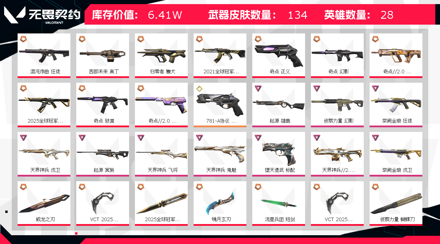 未定级(上赛幕超凡),狂徒(21冠军25冠军奇点混沌威龙紫金)幻影(侦查奇点)25蝴蝶25VCN爪刀