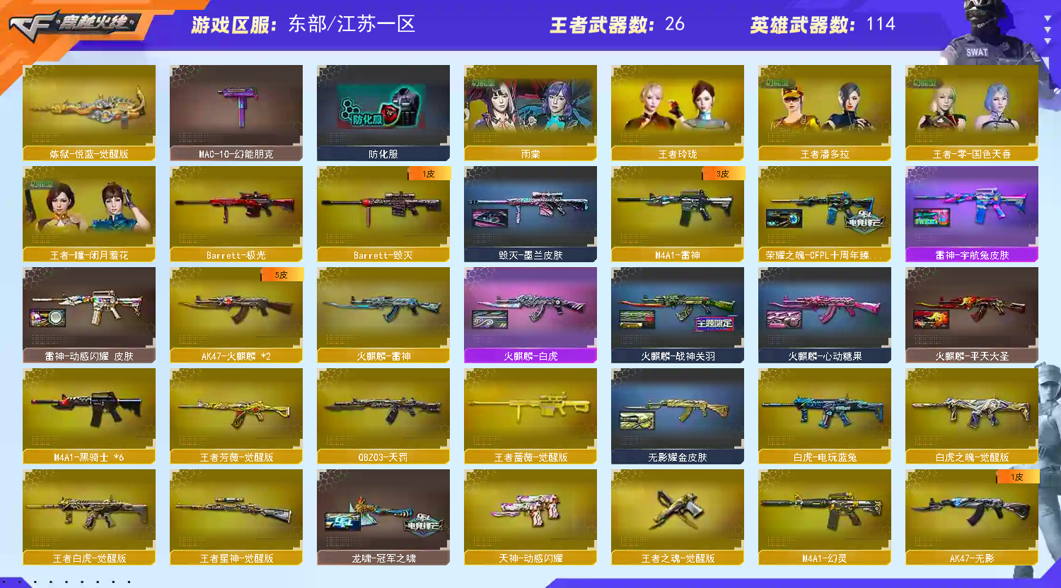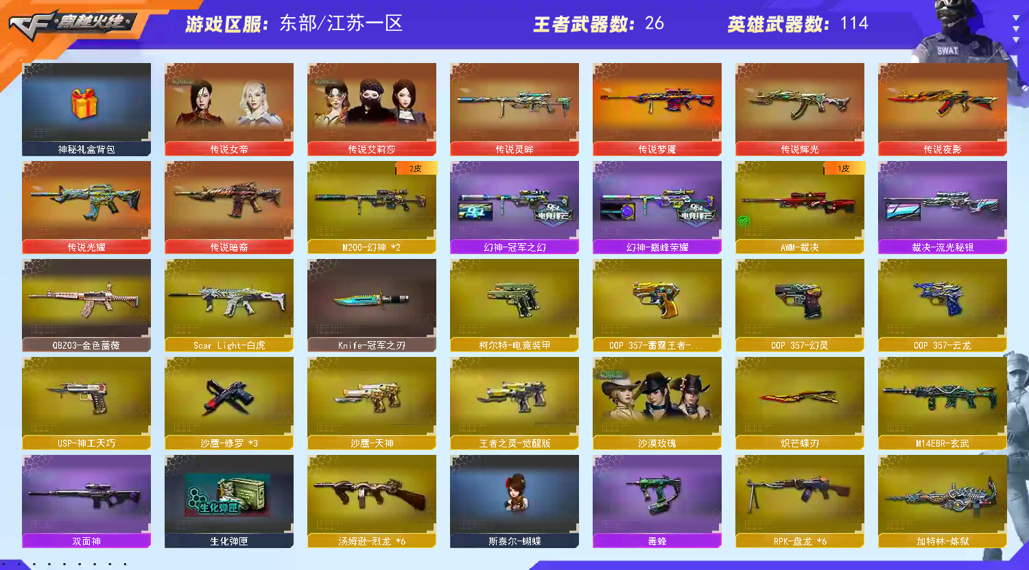 • 游戏区服:穿越火线 / 东部 / 江苏一区