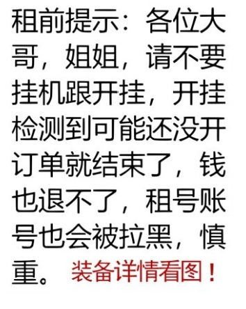 • 租号限制:起租时间2小时,租号0次及以上才可租用此号