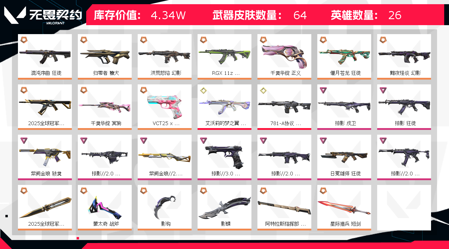 • 皮肤资产价值: 43420