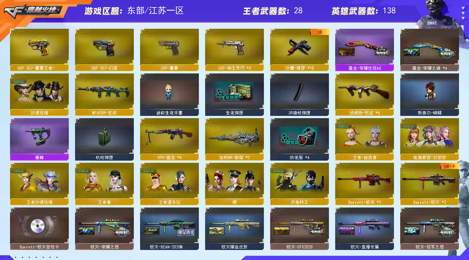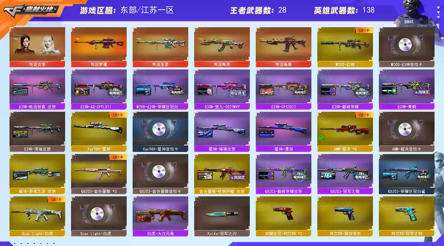 幻神三件套 Kar98K-星神三件套 Knife-冠军之刃 】【四防传说女帝】【M200-幻神+音效卡+幻神-电流骇客+幻神-宠儿+幻神-荣耀世冠白鲨+幻神-青鹤+幻神-周瑜+幻神-CFS2022+幻神-巅峰荣耀+幻神-AG-CFPLS17】【竞技荣光套+四防云悠悠+usp雷暴】【Kar98K-星神+音效卡+漫游+星神-璀璨 】【王者风神】【王者幻神】【王者星神】【传说梦魇】【传说圣灵】【传说暗裔】【传说辉光】【ScarLight-白虎+音效卡+大汉风骨】【QBZ03-金色蔷薇+音效卡+冠军之薇+巅峰荣耀】【生化 4盘龙 2炼狱 6烈龙 毒蜂 蝴蝶 死亡之眼 黄金猫猫手套白鲨】【裁决+音效卡+异化之源】【Barrett-毁灭+音效卡+毁灭-冠军之怒】【极光】【荣耀世冠套】【AK47-火麒麟+音效卡+AK47-火麒麟-荣耀世冠ag+火麒麟-even+火麒麟-冠军之心】【麒麟】【黑龙+音效卡+黑龙-冠军之武】【M4A1-雷神+M4A1-雷神-荣耀世冠ag+雷神-传奇n9+雷神-宠儿+雷神-荣耀之魄】【黑骑士+音效卡】【王者之魄 王者之势 王者之幻 王者冰魄 王者之烈 王者霜心 王者芳薇 王者之光 王者之决 王者雷怒】【无影 死神 黑武士 天启 超新星 黑鲨 龙血 hk417-朱雀 玄武 玫瑰精灵】【21手枪 修罗*10 usp雷暴 cop幻灵 usp神工天巧*3 荣耀世冠-柯尔特*2 cop雷霆王者 柯尔特-冠军之特】【14近战 屠龙*4 龙啸 擎天 麒麟刺*2 幻灵之锋 王者之锋 】【手雷 电竞装甲 竞技荣光 神工天巧 】【四防 沙漠玫瑰 王者春 王者迷迭香 王者潘多拉 王者沙漠玫瑰】【幻神音效卡 Kar98K-星神音效卡 裁决音效卡 ScarLight-白虎音效卡 qbz音效卡;