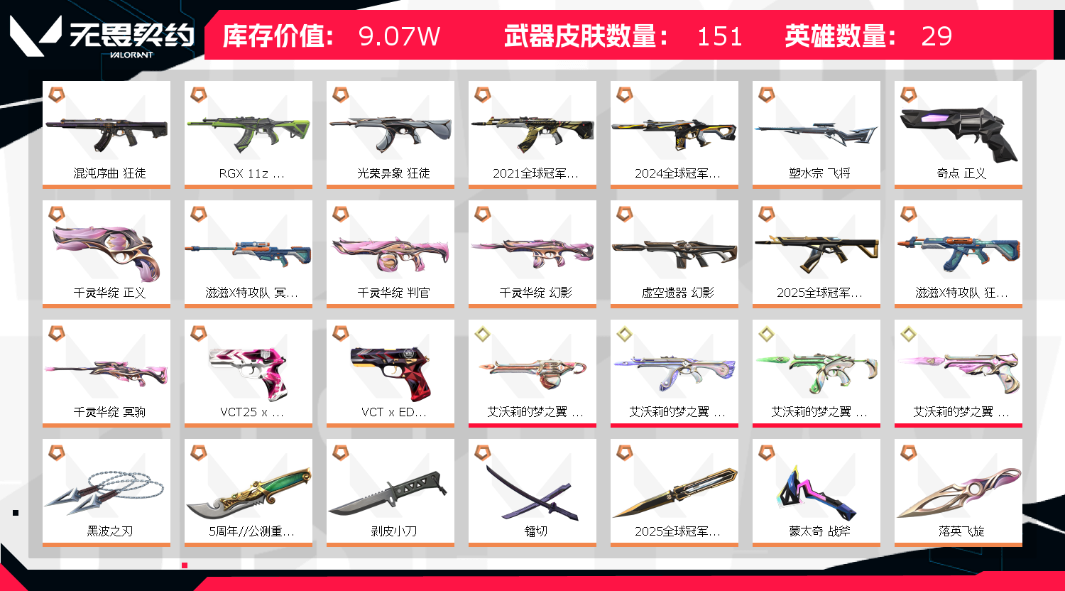【拥有套装】滋滋X特攻队套装(滋滋X特攻队-狂徒,滋滋X特攻队-冥驹,嘟昂嘟昂超弹力水球拳套)千灵华绽套装(千灵华绽-幻影,千灵华绽-冥驹,千灵华绽-判官,千灵华绽--正义,落英飞旋)2025全球冠军赛套装(2025全球冠军赛-狂徒,2025全球冠军赛-蝴蝶刀)2024全球冠军赛套装(2024全球冠军赛-幻影,2024全球冠军赛-战刀)2021全球冠军赛套装(2021全球冠军赛-狂徒,2021全球冠军赛-爪刀)艾沃莉的梦之翼套装(艾沃莉的梦之翼-狂徒,艾沃莉的梦之翼-奥丁,艾沃莉的梦之翼-骇灵,艾沃莉的梦之翼-鬼魅,艾沃莉的魔法棒)