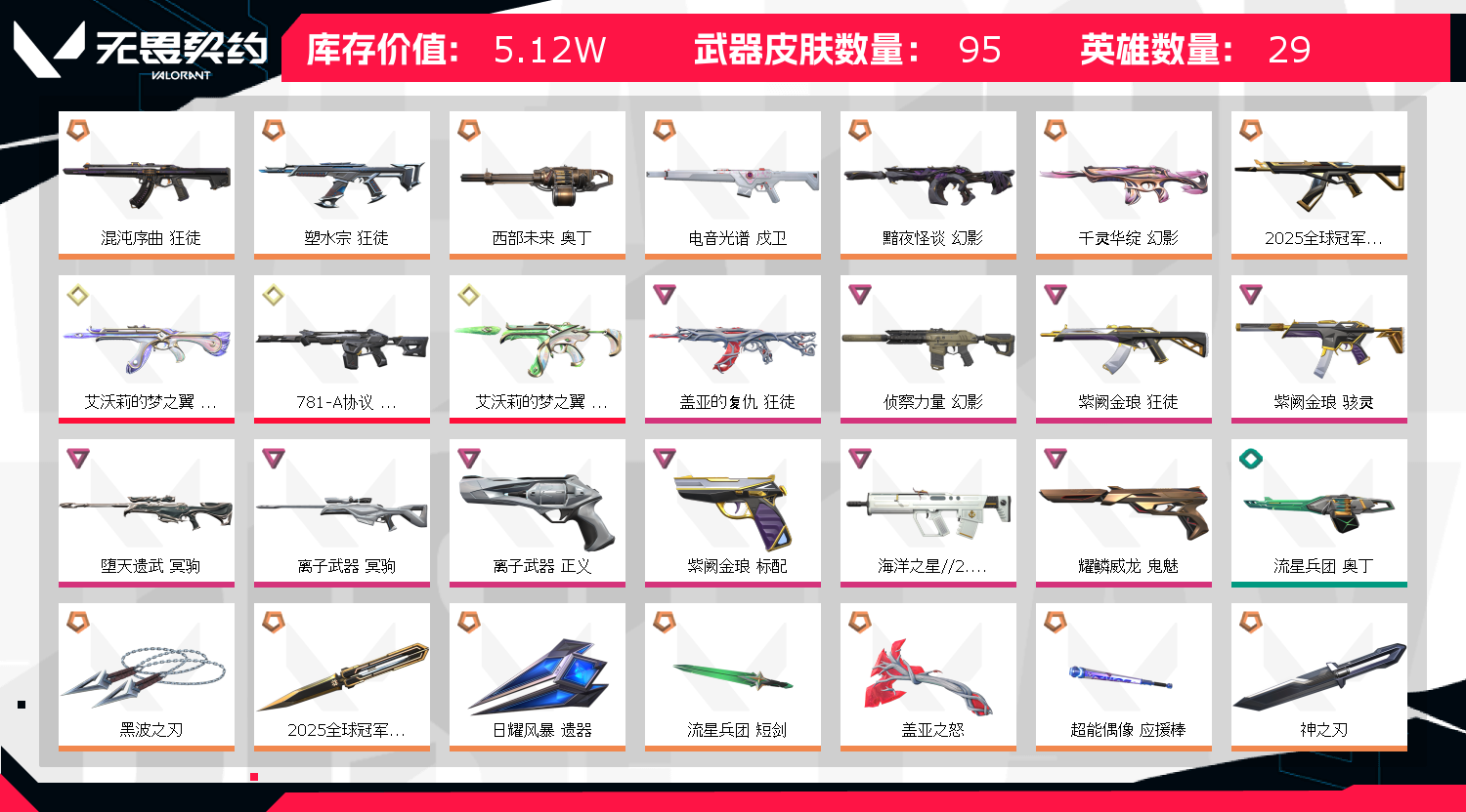 • 武器皮肤数量: 95