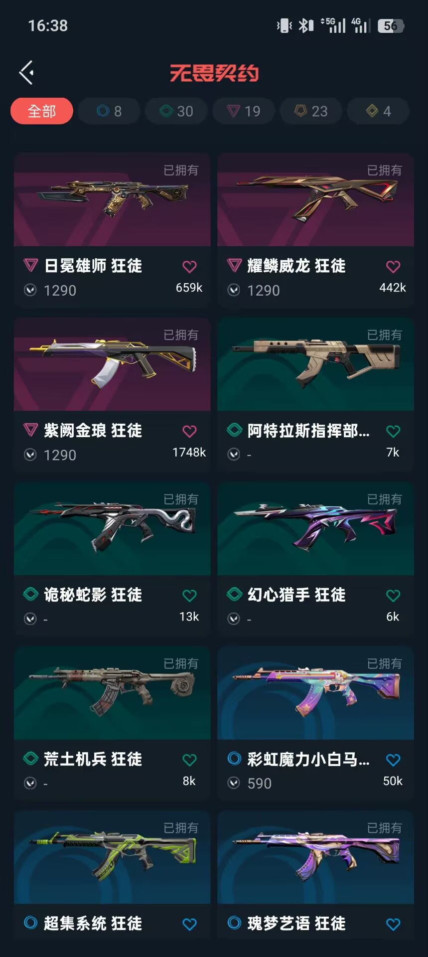 可排位 英雄28 武器皮肤数量161