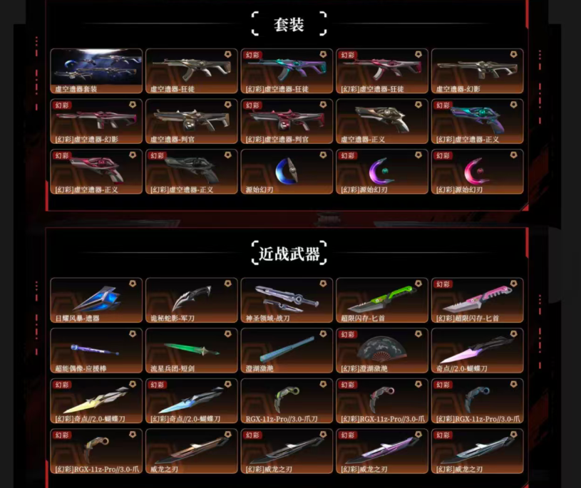虚空遗器套✨混沌序曲盖亚的复仇紫金RGX堕天般若盖世英雄威龙掠影狂徒✨VCT西部正义军刀蝴蝶刀