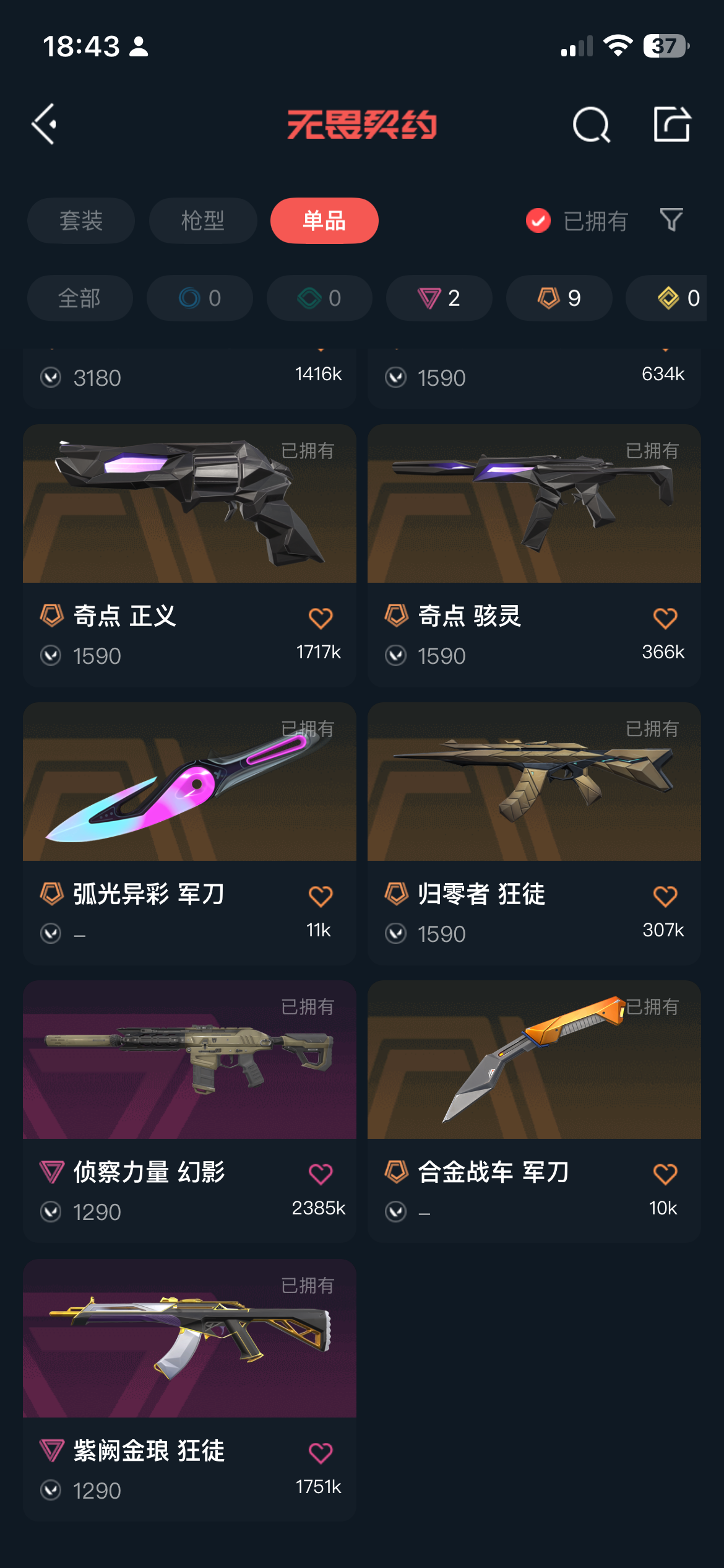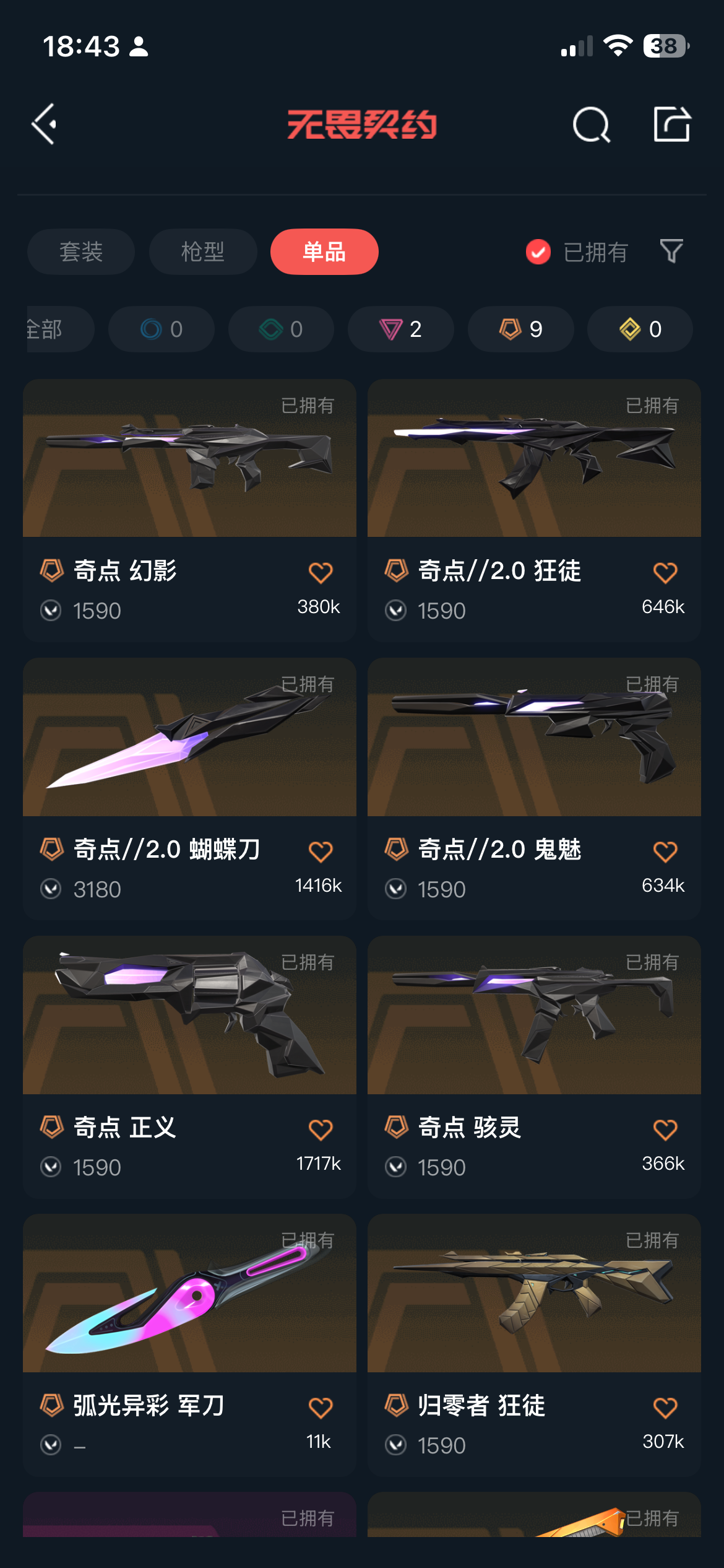 允许 武器皮肤数量41 奇点2.0 归零者 侦查幻影