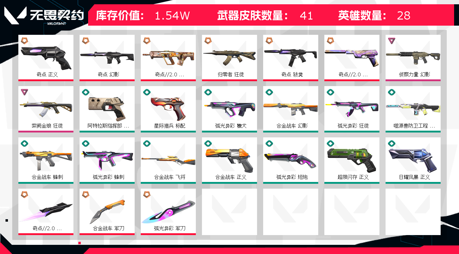首页 > 租号大厅 > 无畏契约-wegame > wegame/wegame > 允许 武器皮肤数量41 奇点2.0 归零者 侦查幻影